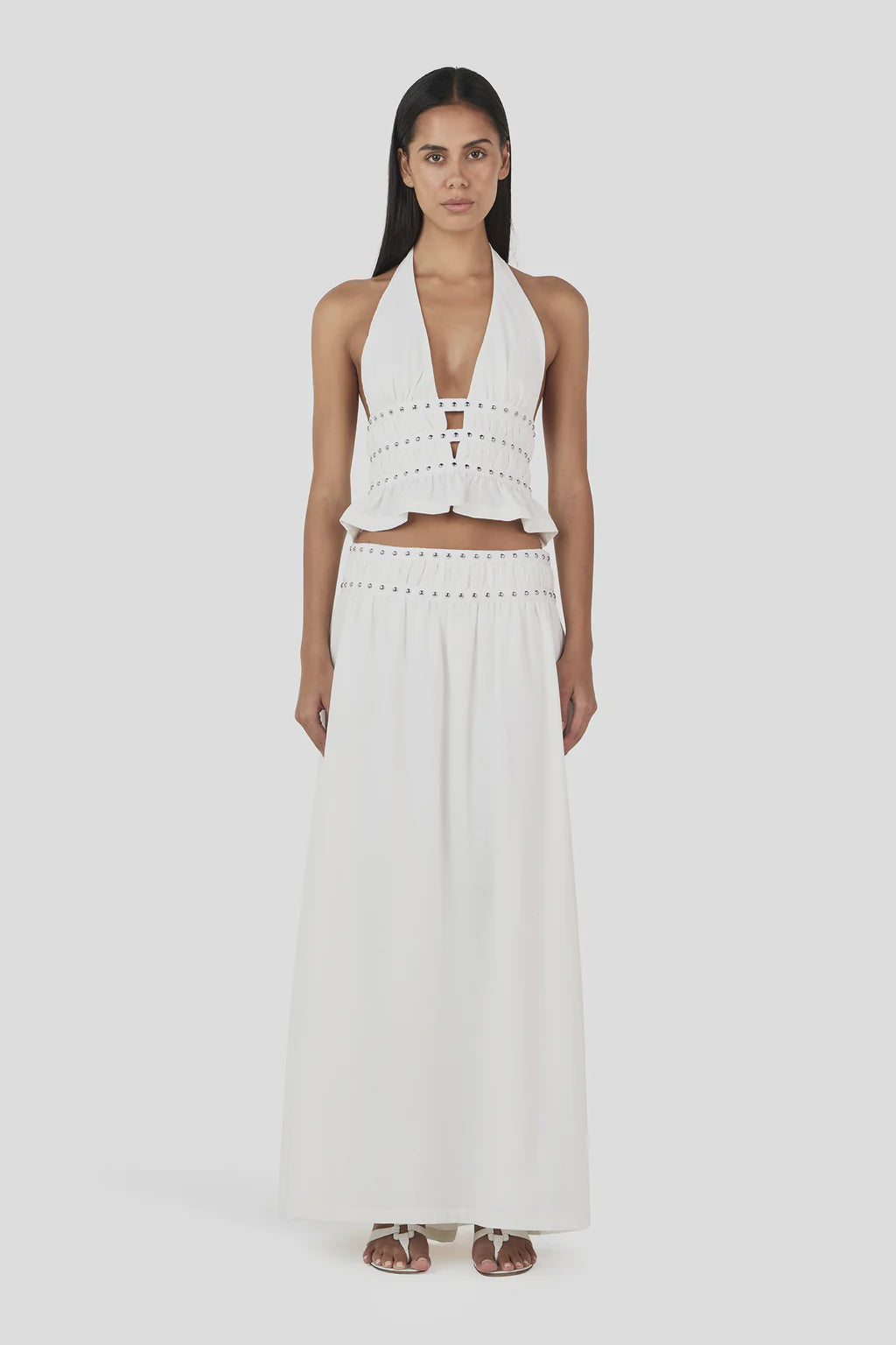 Staple The Label Bianca Asymmetrical Bias Maxi Skirt-Off White/Beige