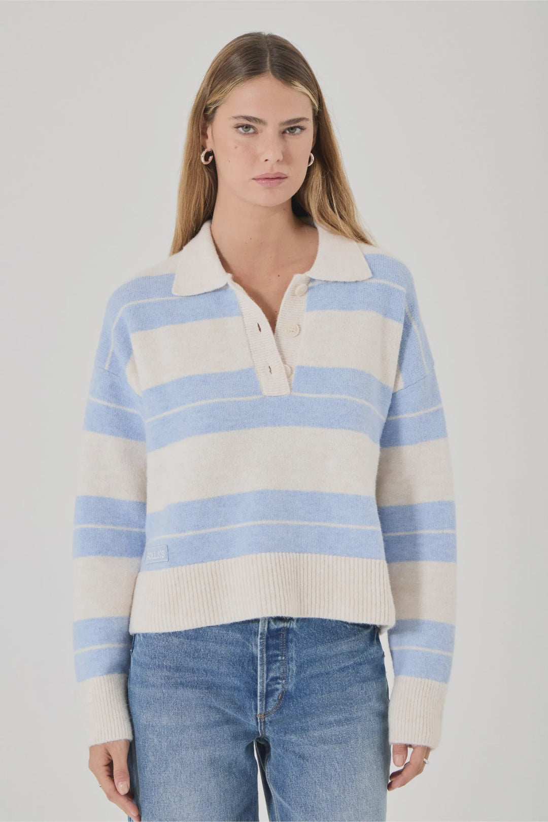 Rollas Sofia Stripe Polo Knit - Soft Blue