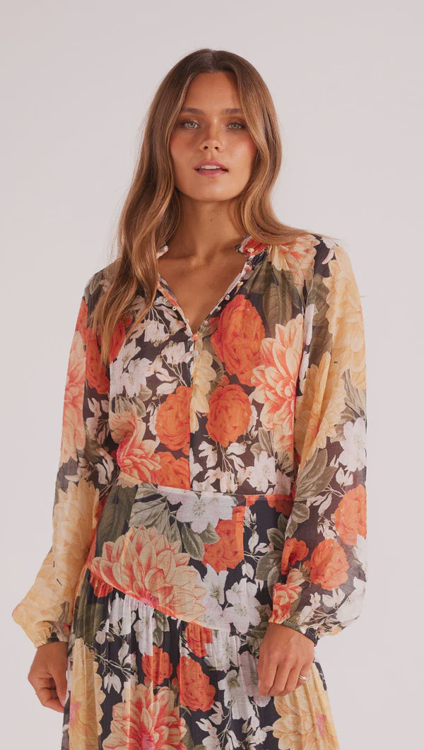 MinkPink Poppy Cowl Neck Top - Red/Floral