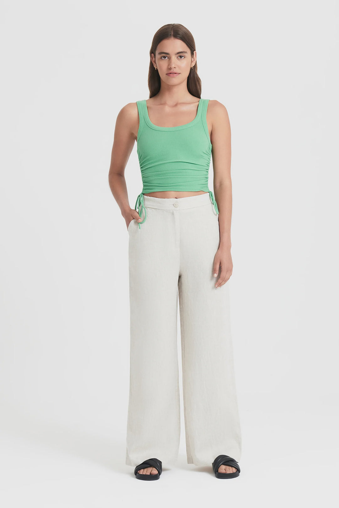 Slubby Stripe Long Sleeve Tee- White/Beige