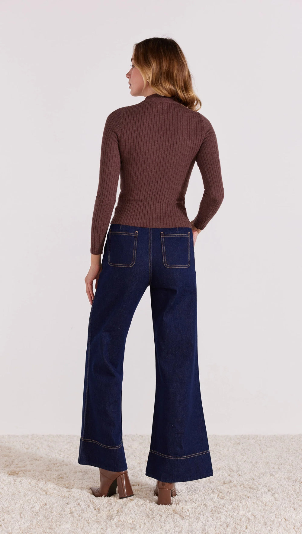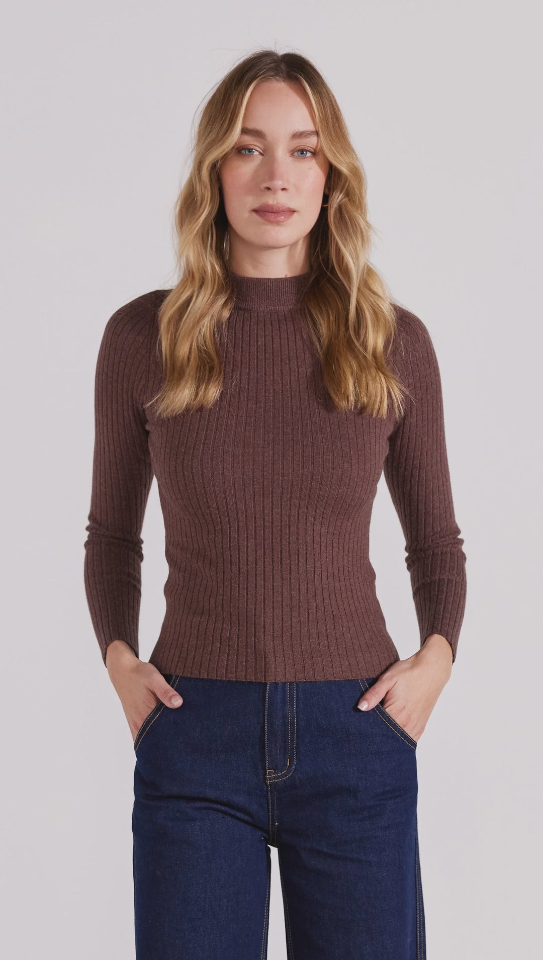 Staple The Label Anya Ribbed Knit Top - Chocolate