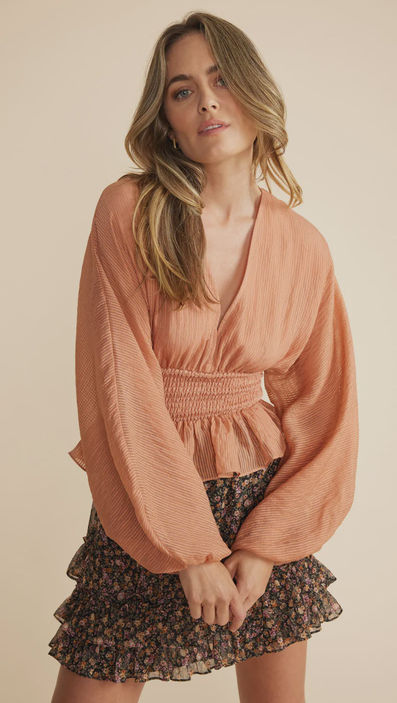 Tahlia Shirred Blouse - Terracotta