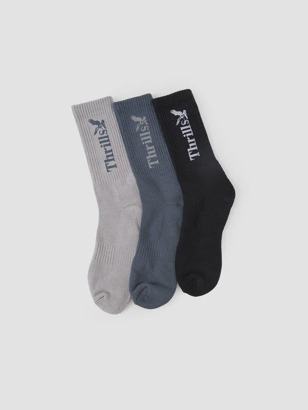 Thrills Workwear 3 Pack Sock- Alloy, Light Petrol, Black