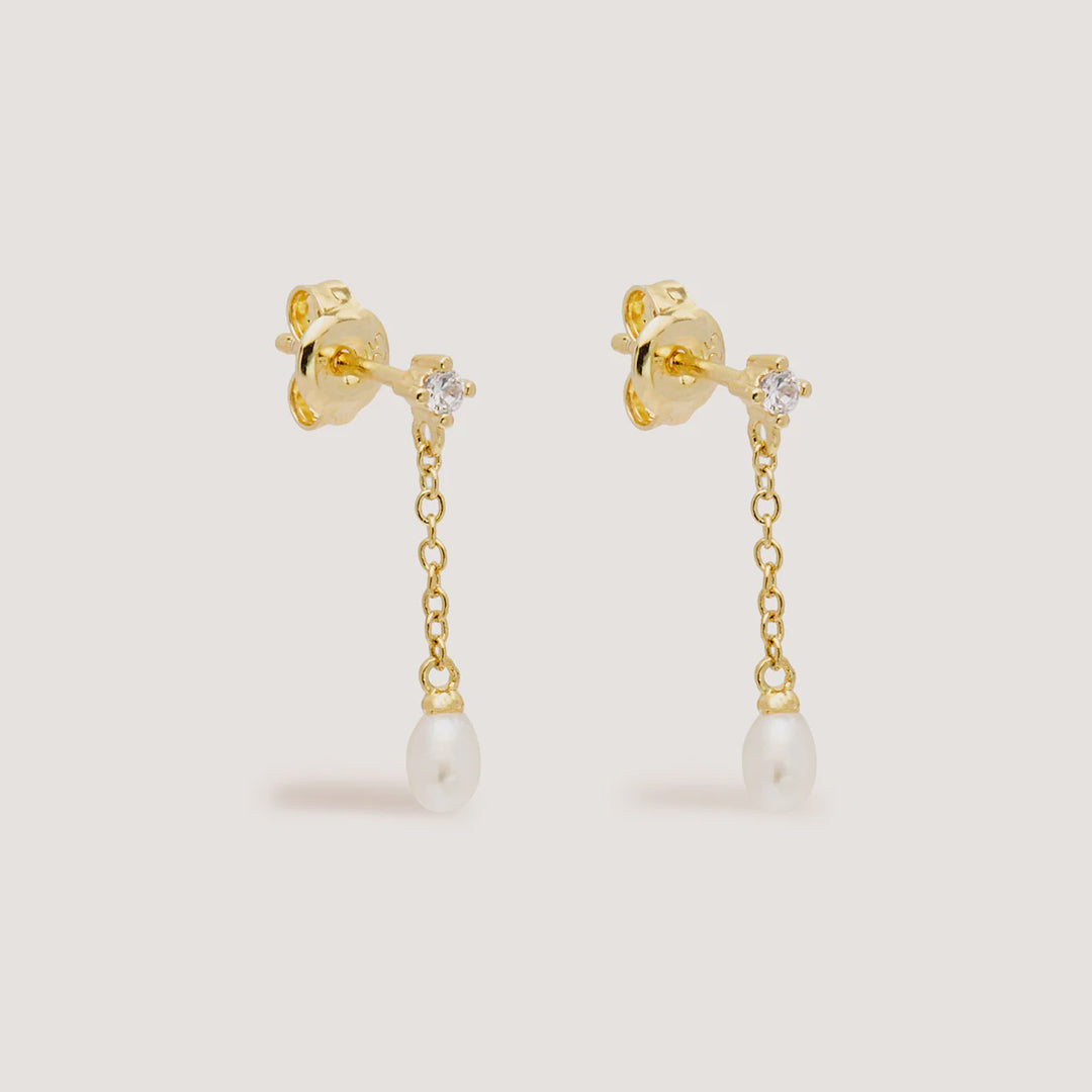 By Charlotte Tear Drop Chain Pearl Earrings - 18k Gold Vermeil
