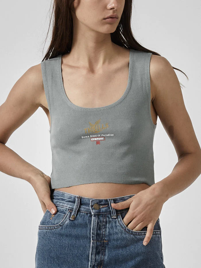 Golden Paradise Crop Rib Singlet - Sea Glass
