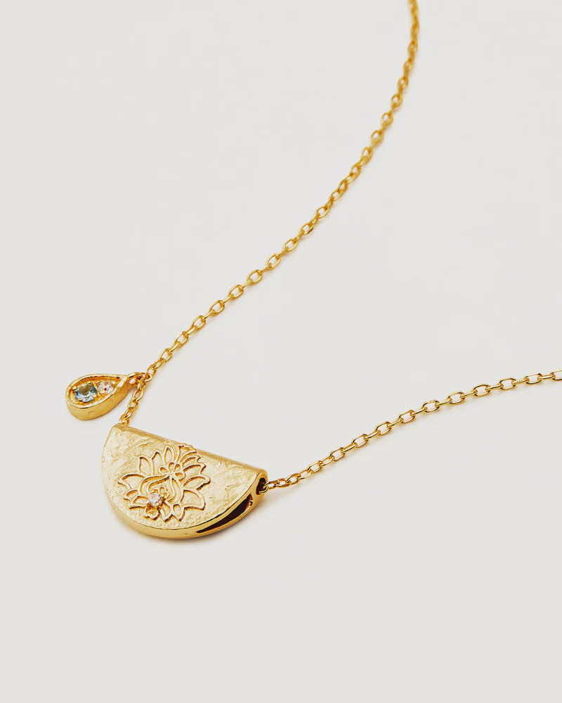By Charlotte 18k Gold Vermeil Lotus Birthstone Necklace - March/Aquamarine