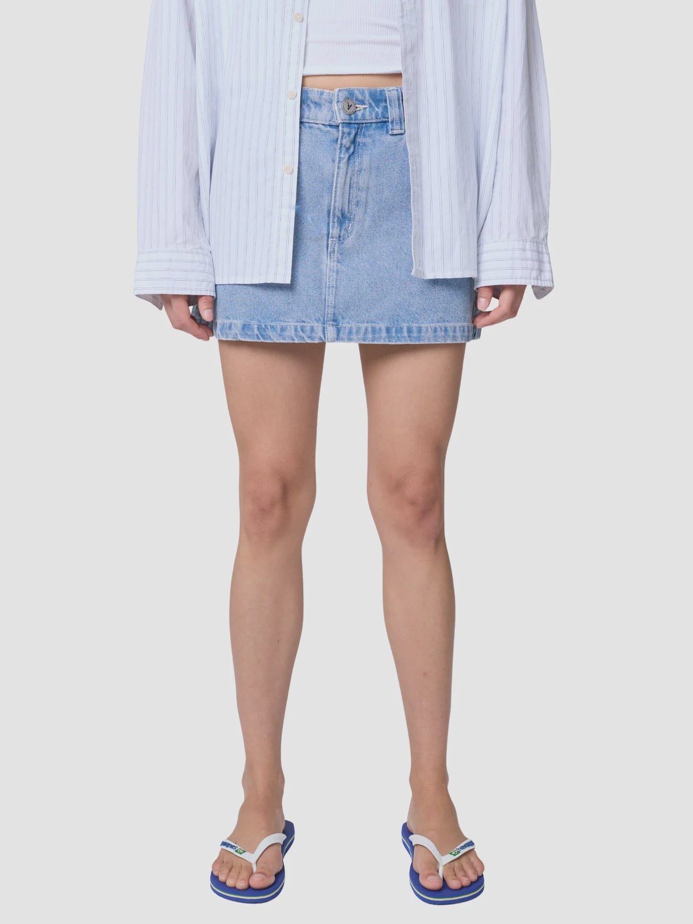 The 95 Aline Skirt Jordan from Abrand features a high waist with a relaxed fit and a button front. It has front pockets for added detail.