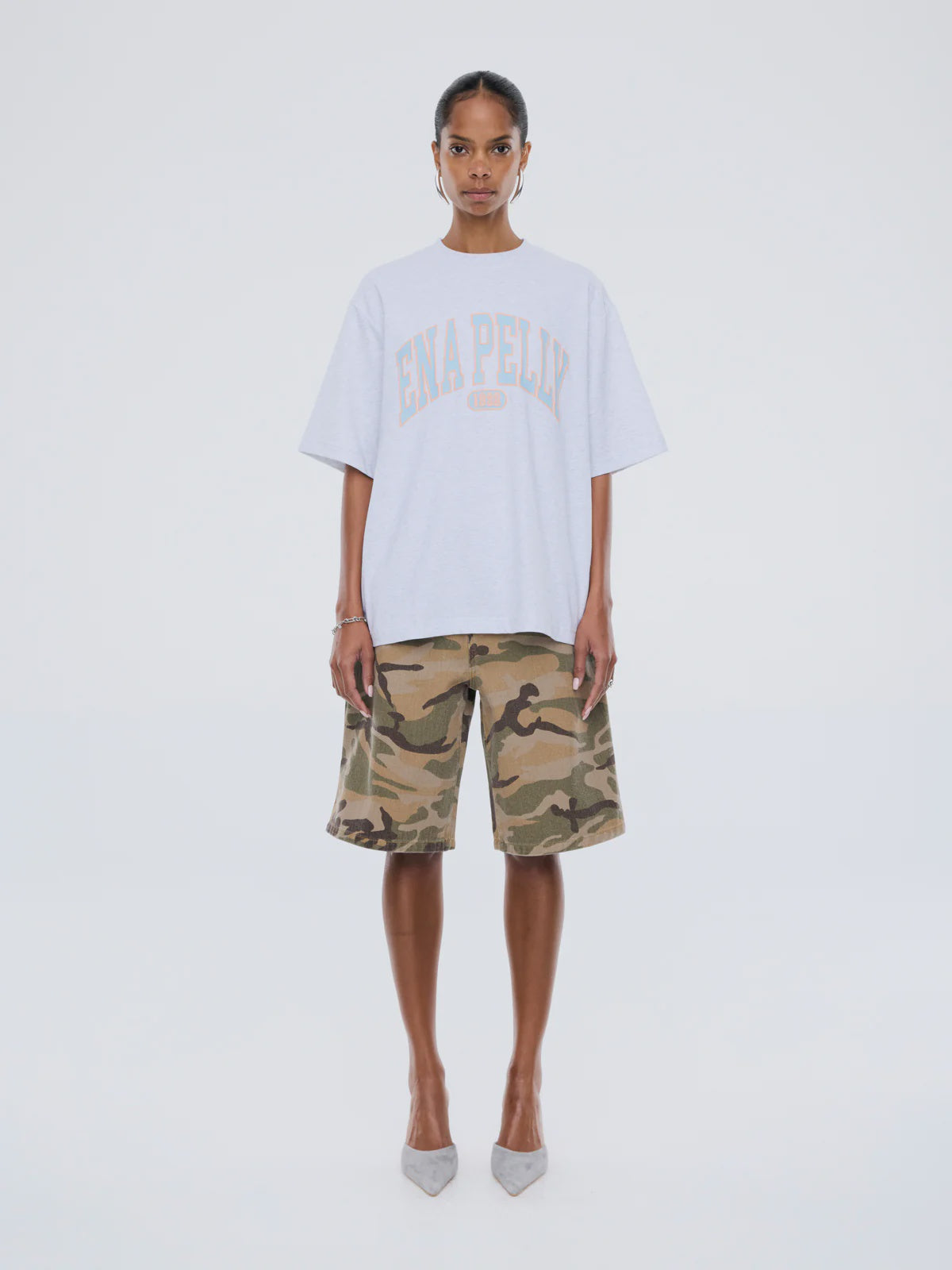 Street Energy. Everyday Ease. The Blue Collegiate Tee is crafted from cotton in white marle with a relaxed, boxy fit. Finished with a collegiate Ena Pelly puff-print graphic for a modern, textured finish.