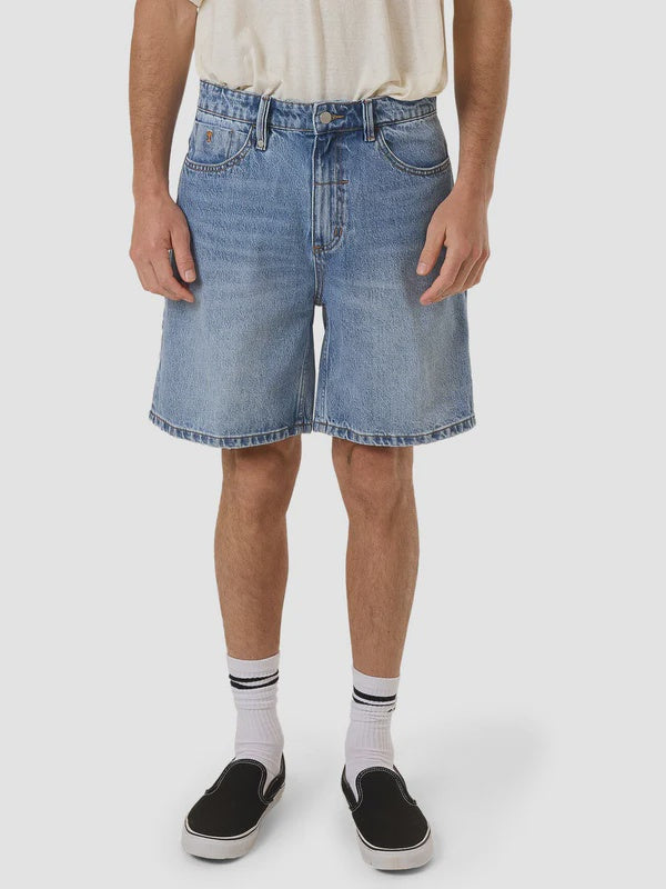 Our Slacker Denim Short in Tempest Blue is down for everything you have in mind for summer. A versatile wardrobe addition, these men's denim shorts feature a relaxed, mid-rise cut and above-the-knee perfectly loose legs. The 5-pocket styling keeps things timeless, while the non-stretch cotton denim construction guarantees long-lasting wear.