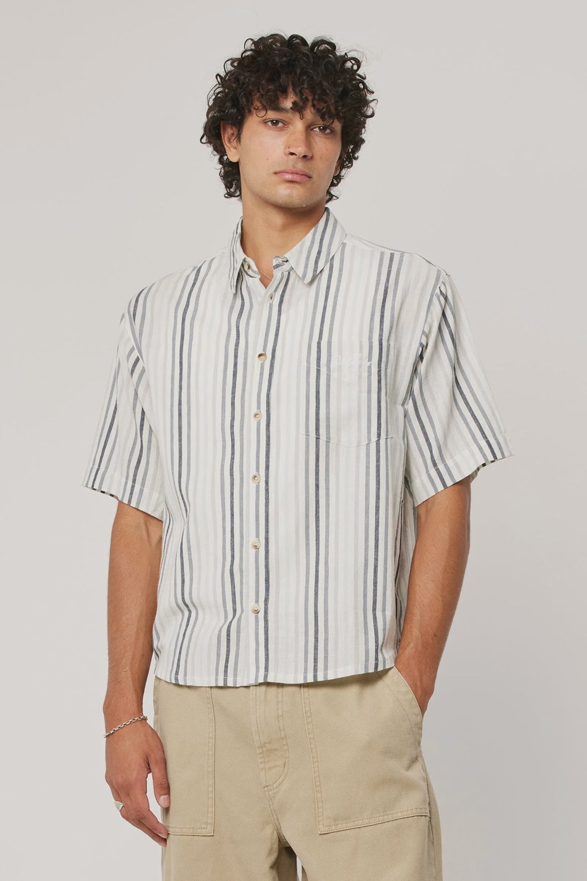 Rollas Tidal Waves Stripe Shirt- Titanium Stripe