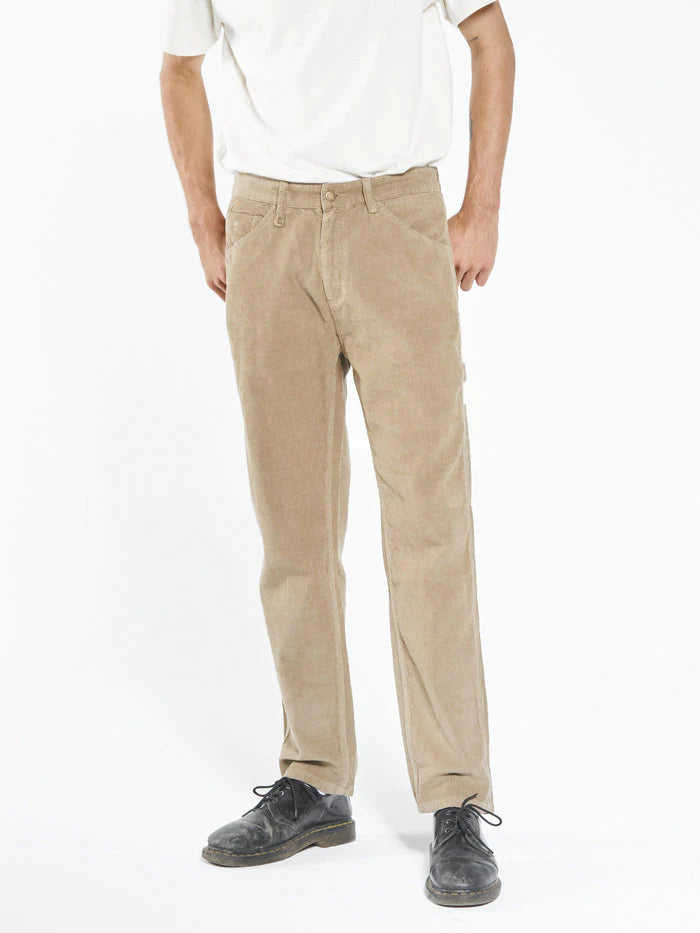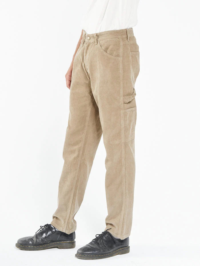 Earthy and dependable, our Elmwood colour this season has a military and workwear vibe, across 100% certified organic cotton pieces, we loved this colour so much we put it across tees, crews and carpenter pants. The Carpenter Pant, our loose fit baggy jean in a 5 pocket workwear block, comes in a soft corduroy fabric. Oversize back pockets, hammer loop and smaller utility pockets, these are the perfect throw-back 90s pants.