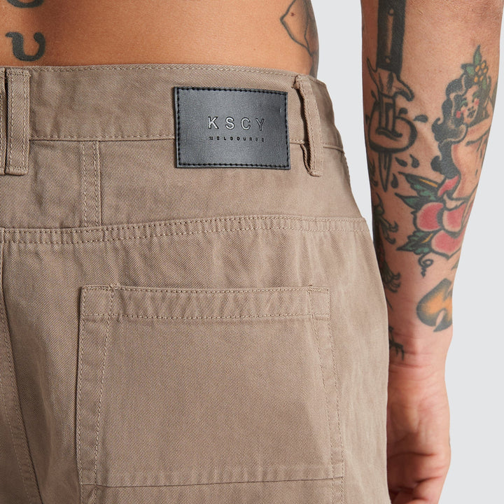 The Crawford Cargo Pants in Taupe by KSCY are designed in a relaxed fit for that oversized look, giving you plenty of room in the leg. Perfect for a laid-back streetwear feel, pair with your favourite KSCY box fit tee to keep that relaxed look going.
