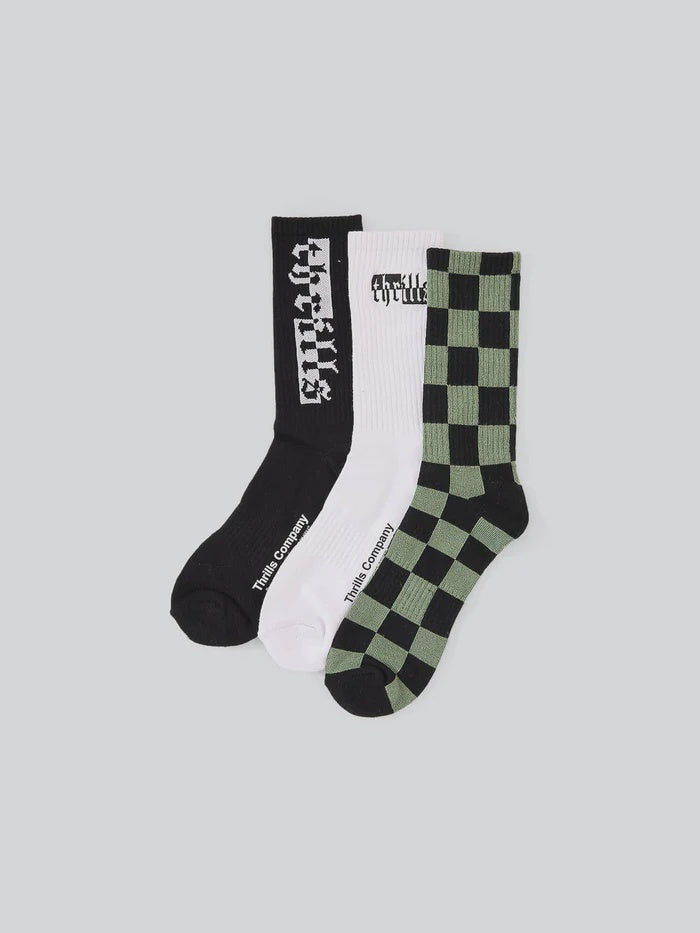 Thrills Excitement Excitement 3 Pack Sock-White/Black/Beryl Green Checker