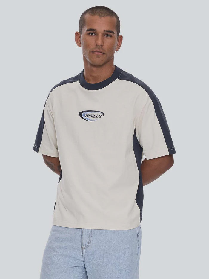 Thrills Fusion Panel Box Fit Oversize Cropped Tee-Heritage White