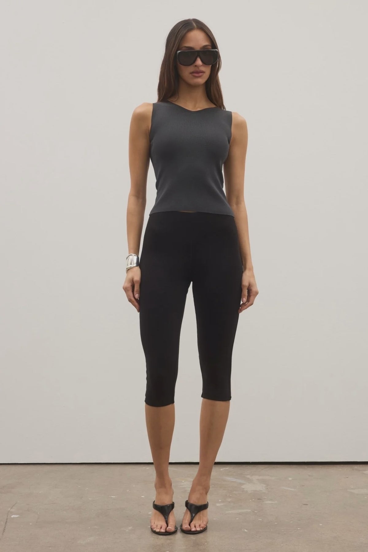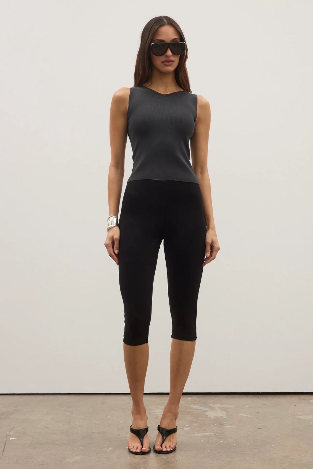 A sleeveless, softly structured top with a subtle V neckline and a close, refined fit. Designed to sit neatly at the waist, it offers a smooth feel against the body and an easy, streamlined shape for everyday wear.