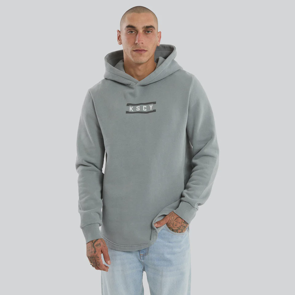 The Divine Dual Curved Hoodie in Pigment Ultimate Grey from KSCY is a blend of comfort and style, featuring a slim fit and a distinctive curved hem.