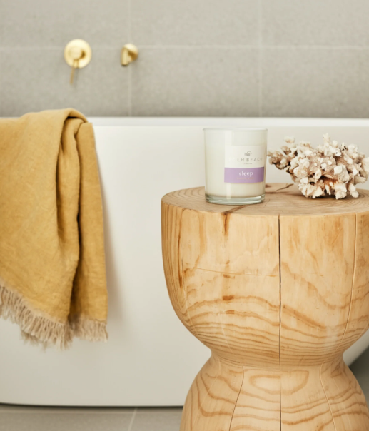 One hour or more before bed light the Sleep Candle and allow its calming scent to fill the room. Extinguish the flame before getting into bed.