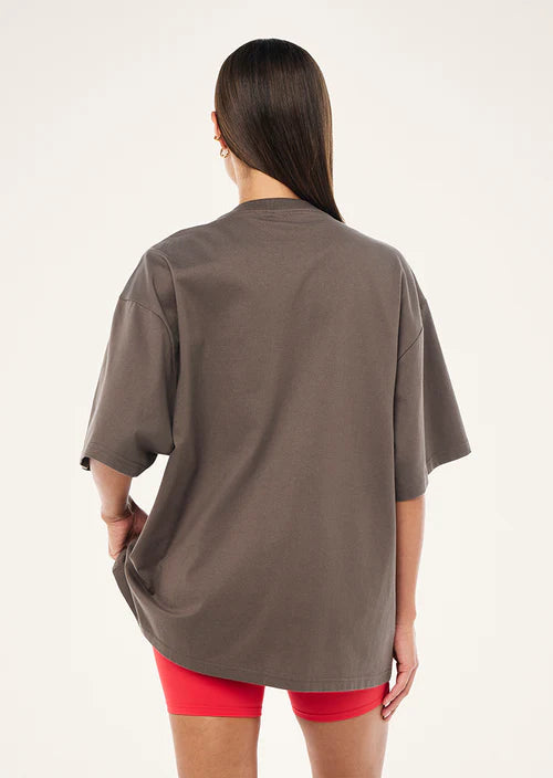 The Inbound Tee in Major Brown is made from 100% organic cotton, delivering a premium, breathable feel with a refined weight. Created for wellness routines, low-impact movement and everyday wear, it's built for layering season. Designed in an oversized fit with a ribbed crew neck and statement sleeves, it's finished with seasonal P.E Nation prints for a clean graphic hit. Wear over the Signature Bike Short for effortless studio-to-street dressing.