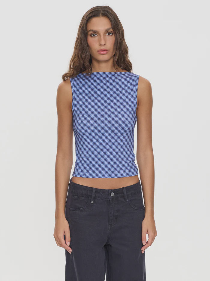 Make a statement without saying a word in the High Speed Check Tank in Guardian Navy. Cut in a sleek, fitted silhouette, this tank is taking center stage, featuring a mix of small and large scale patterns, delivering bold contrasts that strike the perfect balance of timeless and rebellious. Made from a soft, stretchy modal and elastane jersey blend, it's stretchy, flattering and breathable for all-day comfort. An instant streetwear favourite, this piece from our women's fashion AU selection is equal parts playful and edgy.
