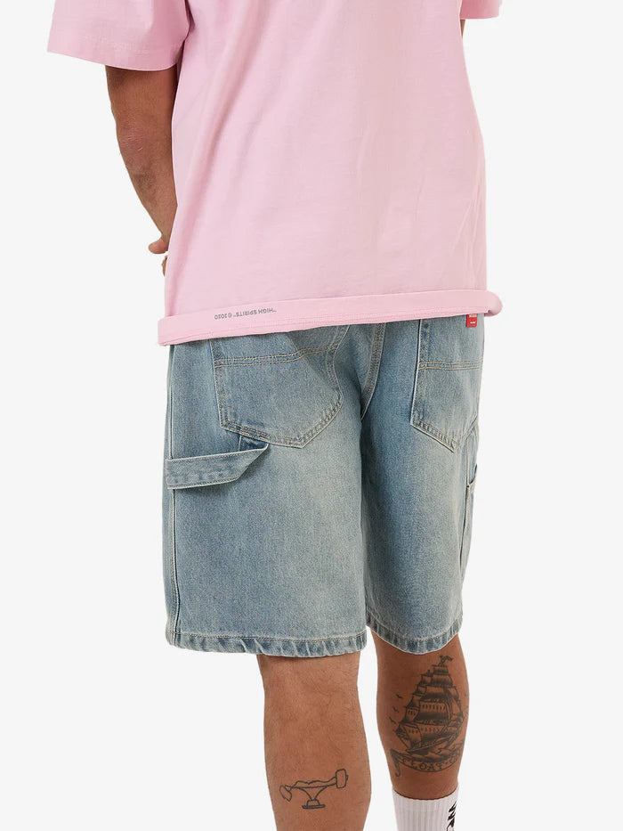 • The Carpenter Jean Short in Light N Dirty goes big with a loose fit, wide hems, and classic tool pocket details. Made from heavyweight cotton denim, these baggy denim shorts for men feature a gritty, worn-in look with serious structure and workwear cut. Easy to style with oversized tees and long-sleeved crewnecks, this men's streetwear staple is ready for everyday wear.