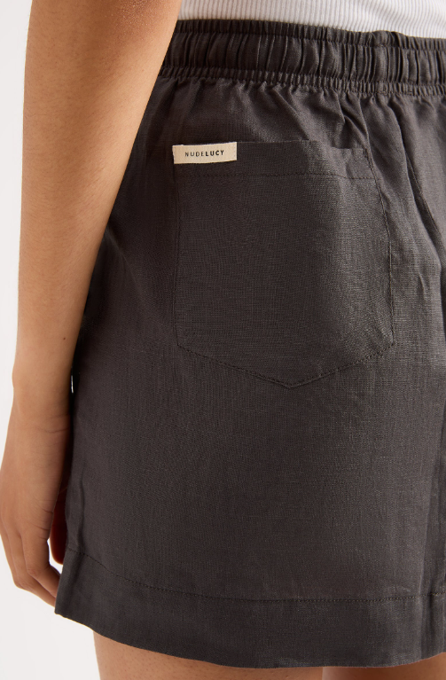 The Lounge Linen Skirt is made in a premium 100% organic French linen which has been washed down for a soft and breathable hand feel. The silhouette is mini length with a clean casual fit. Features include an elasticated waistband with a herringbone drawcord and mock flyfront, side seam pockets and back patch pockets with a Nude Lucy branded label.