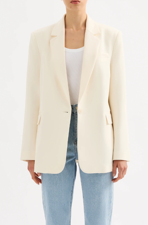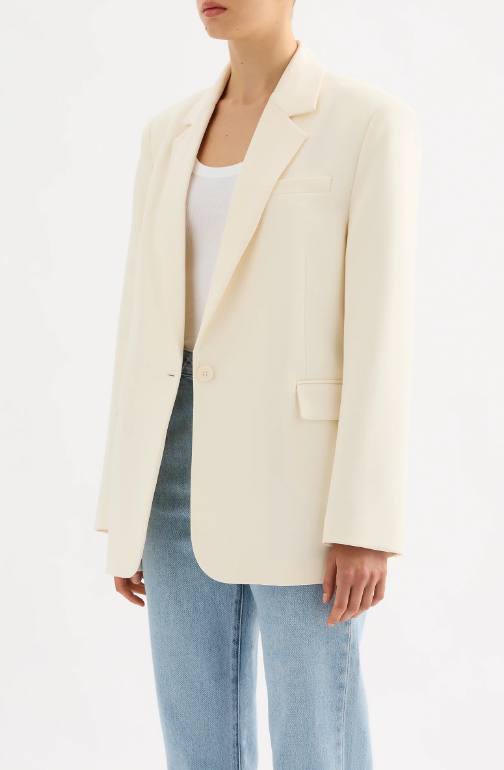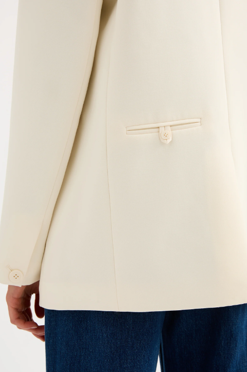 The Myles Blazer is made from a premium tailoring fabrication which has a slight stretch and a smooth handfeel. The silhouette is a structured single breasted shape with classic sloped shoulder, relaxed to slim fit body & full length sleeve. Features include traditional tailoring detailing throughout, tailored vents at sleeves and back of body, back double welt pocket detail and Nude Lucy branded buttons.