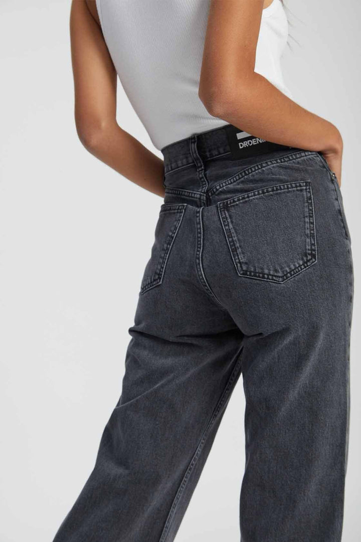 - Sky high rise, Straight leg fit, Non-stretch, Zip closure