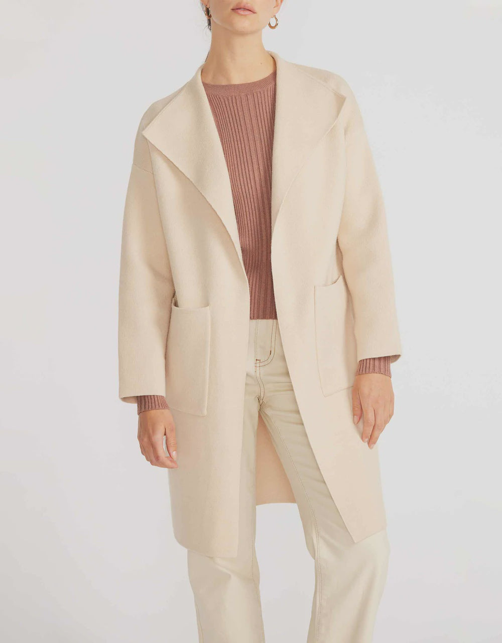 Set to elevate your winter wardrobe the Amelia Coatigan from Staple the Label will bring an element of style and sophistication to any outfit. The perfect outwear layer to pair with all your favourite winter looks. Featuring an open silhouette, full-length sleeves, on the knee length and handy patch pockets on the front. You will be reaching for this stylish coat all season long.