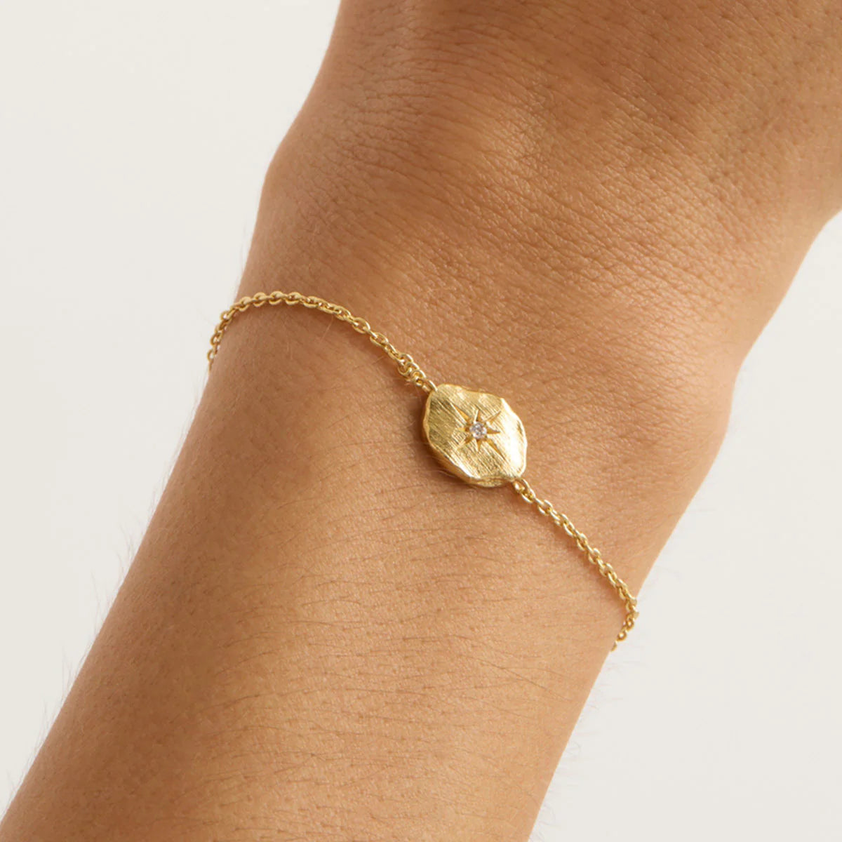 The North Star Bracelet will help guide you to your heart’s true desires. This beautiful oval-shaped pendant bracelet features a North Star design encrusted with a sparkling cubic zirconia crystal. On the back of the bracelet is a special mantra, "Nothing can dim the light that radiates from within". This bracelet is the perfect keepsake to celebrate the radiant light you shine from within.