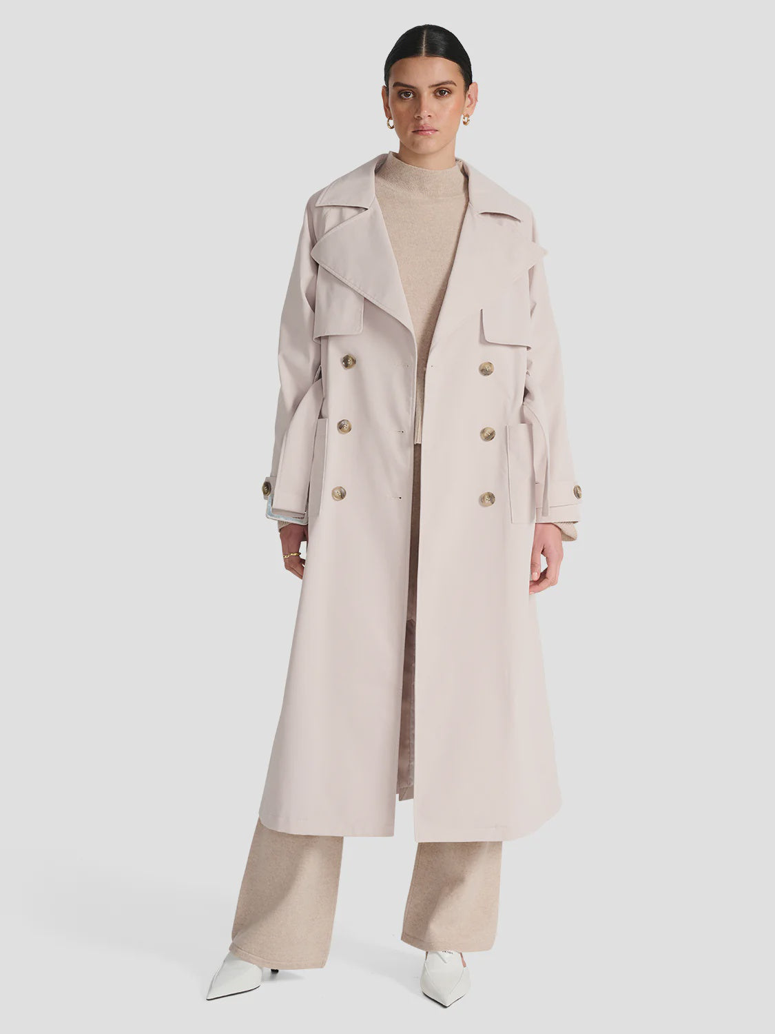 The Carrie Trench Coat has been designed for an efortless outerwear staple. Elevated by an oversized lapel and collar, front twin storm flaps and pleated back storm flap look no further for this seasons perfect trench.