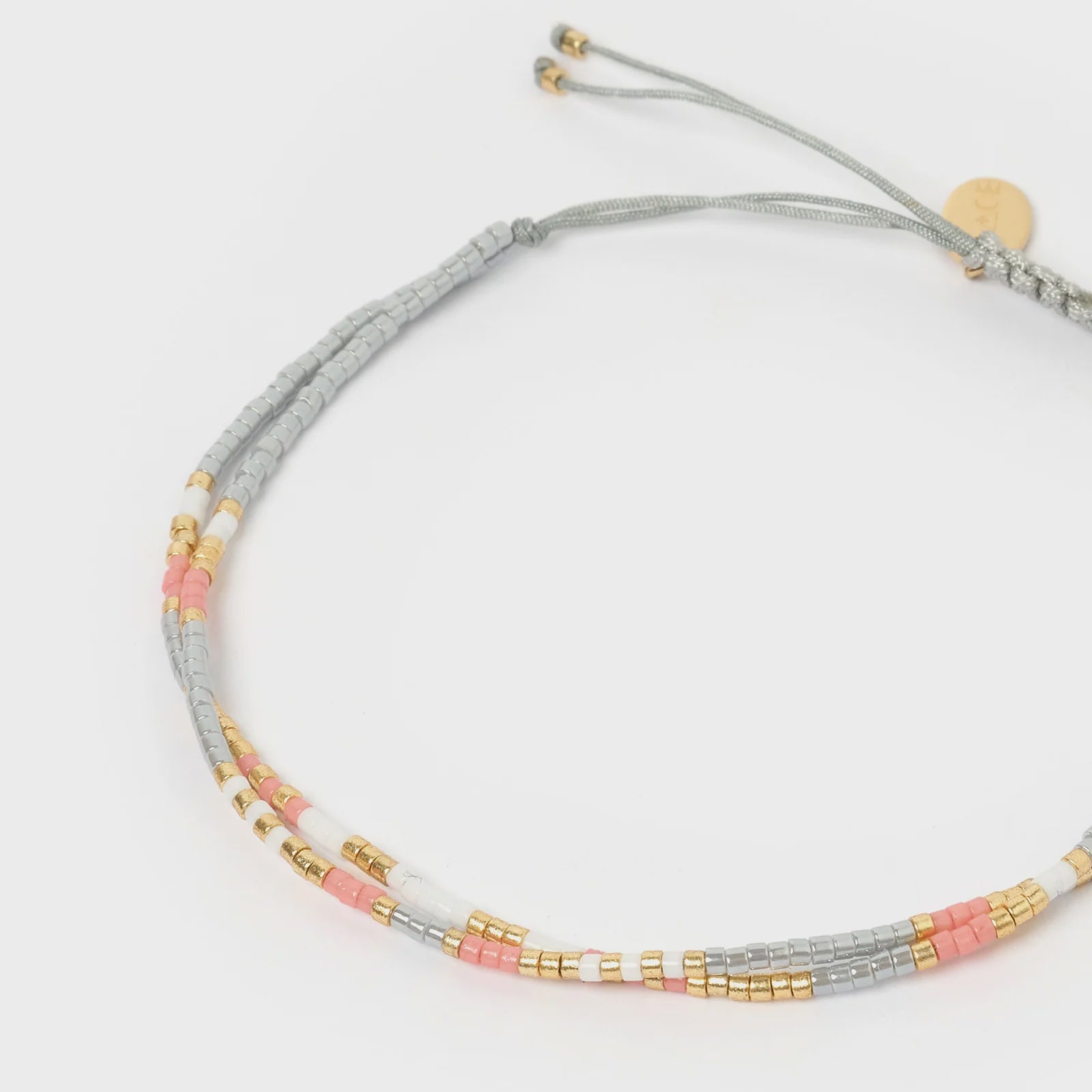 Featuring a double string of glass beads for a little extra statement, this drawstring-closure, everyday bracelet will quickly become your favourite!