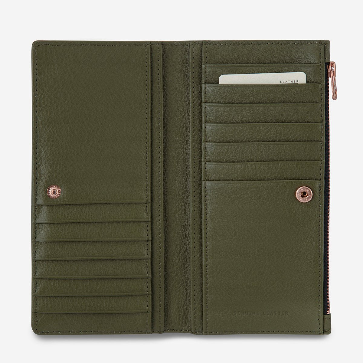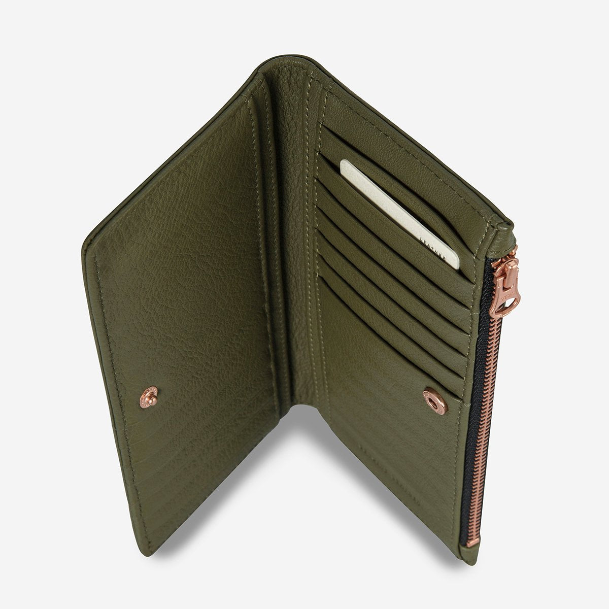 In the beginning, before the great corruption lay the seed of something astounding to come.  With a slim silhouette and profile, the In The Beginning wallet is made of soft shrunken pebble leather and finished with matte rose gold YKK hardware. The outside zipper section makes for easy access to your cash without having to open the main section of the wallet. Whilst the alternate card slots ensure the wallet stays compact even when full.