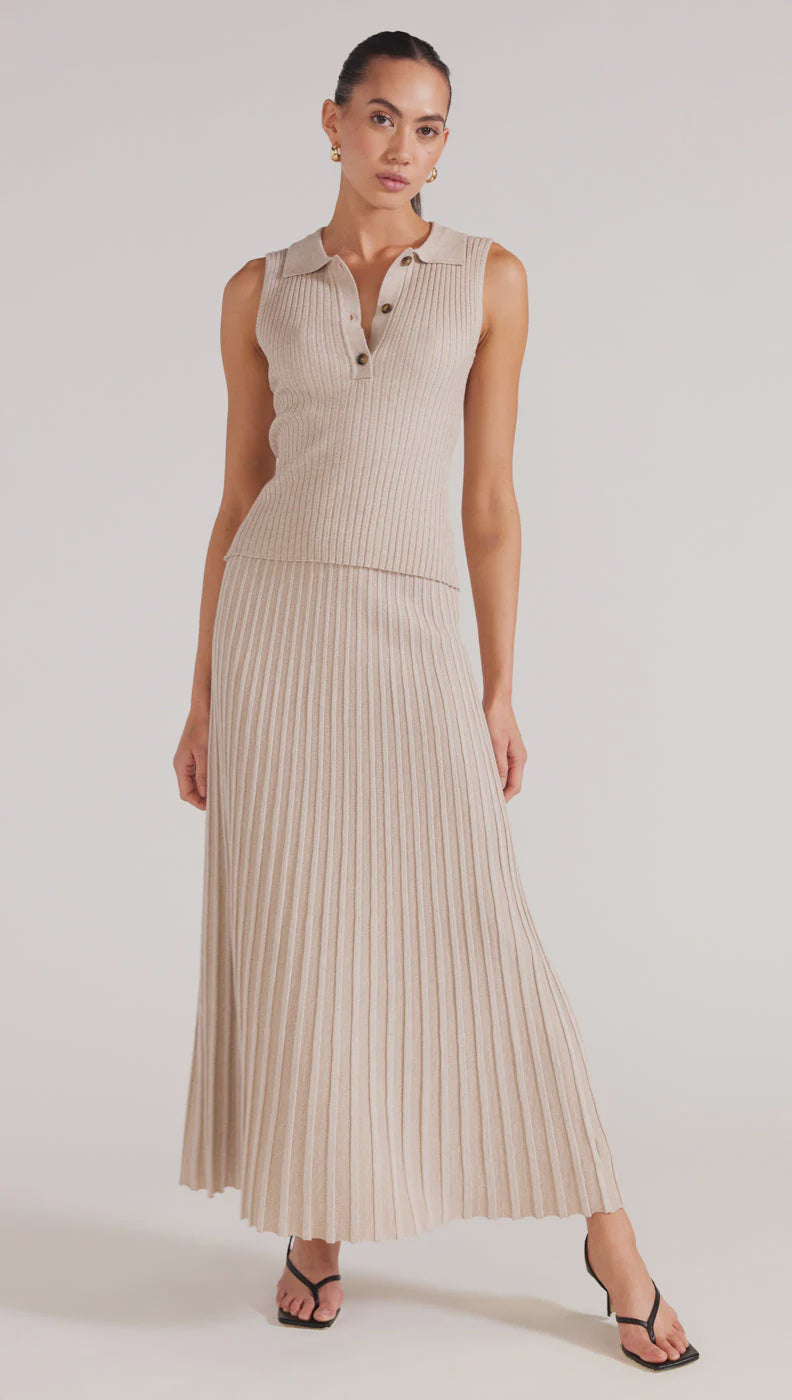 Josie Collared Knit Tank - Beige