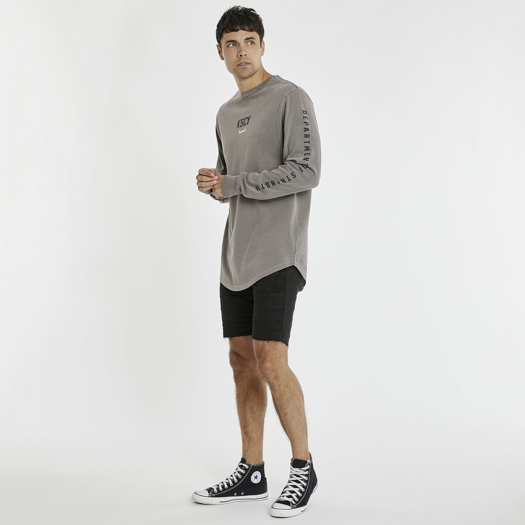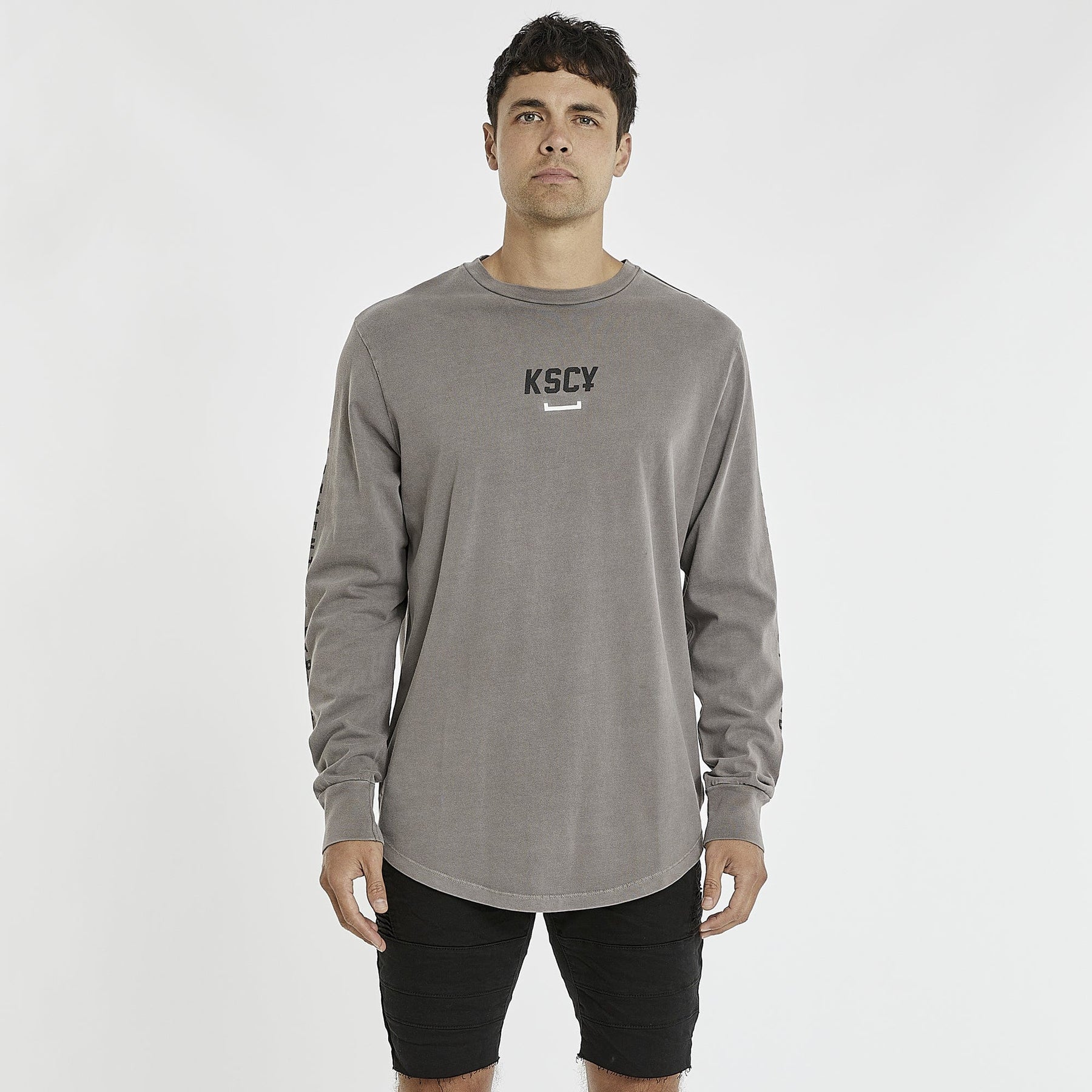 Introducing the Portal Heavy Dual Curved Long Sleeve T-Shirt in Pigment Iron by Kiss Chacey: a fusion of style and comfort. Crafted with meticulous attention to detail, this long sleeve heavy weight tee exemplifies Kiss Chacey's dedication to exceptional artistry.
