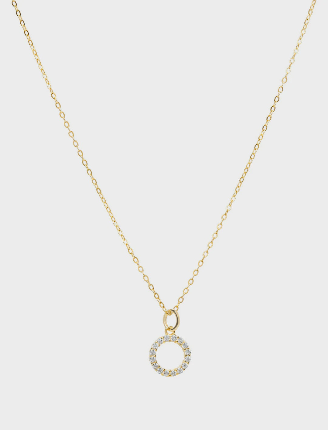 Pendant is an open circle with cubic zirconia stones for a dazzle unlike any other