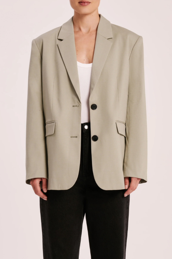 The Rana Blazer is made from a classic wool blend suiting fabrication with a smooth hand feel. The silhouette is a structured single breasted shape with classic sloped shoulder, relaxed to slim fit body & full length sleeve. Features include traditional tailoring detailing throughout, tailored vents at sleeves and back of body and Nude Lucy branded buttons.