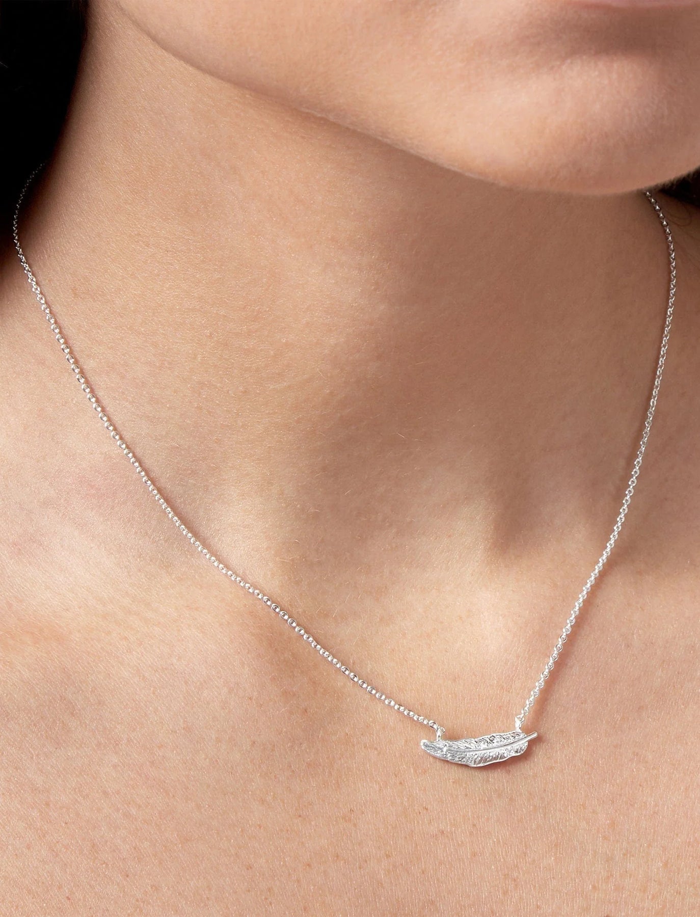 - Its leaf-shaped pendant is beautifully textured and features a single cubic zirconia stone for added sparkle