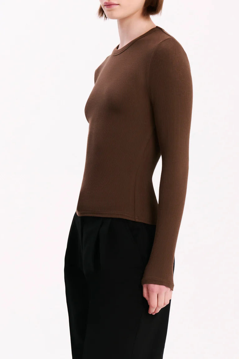 The Organic Rib LS Tee by Nude Lucy is a key piece to add to your basics wardrobe range. Made in organic cotton the silhouette is a flattering close fit. Featured include a crew neck, long fitted sleeves, and length finishing at the hip. Try styling with our Organic Mom Jeans or Organic Straight Jeans for a timeless fit.