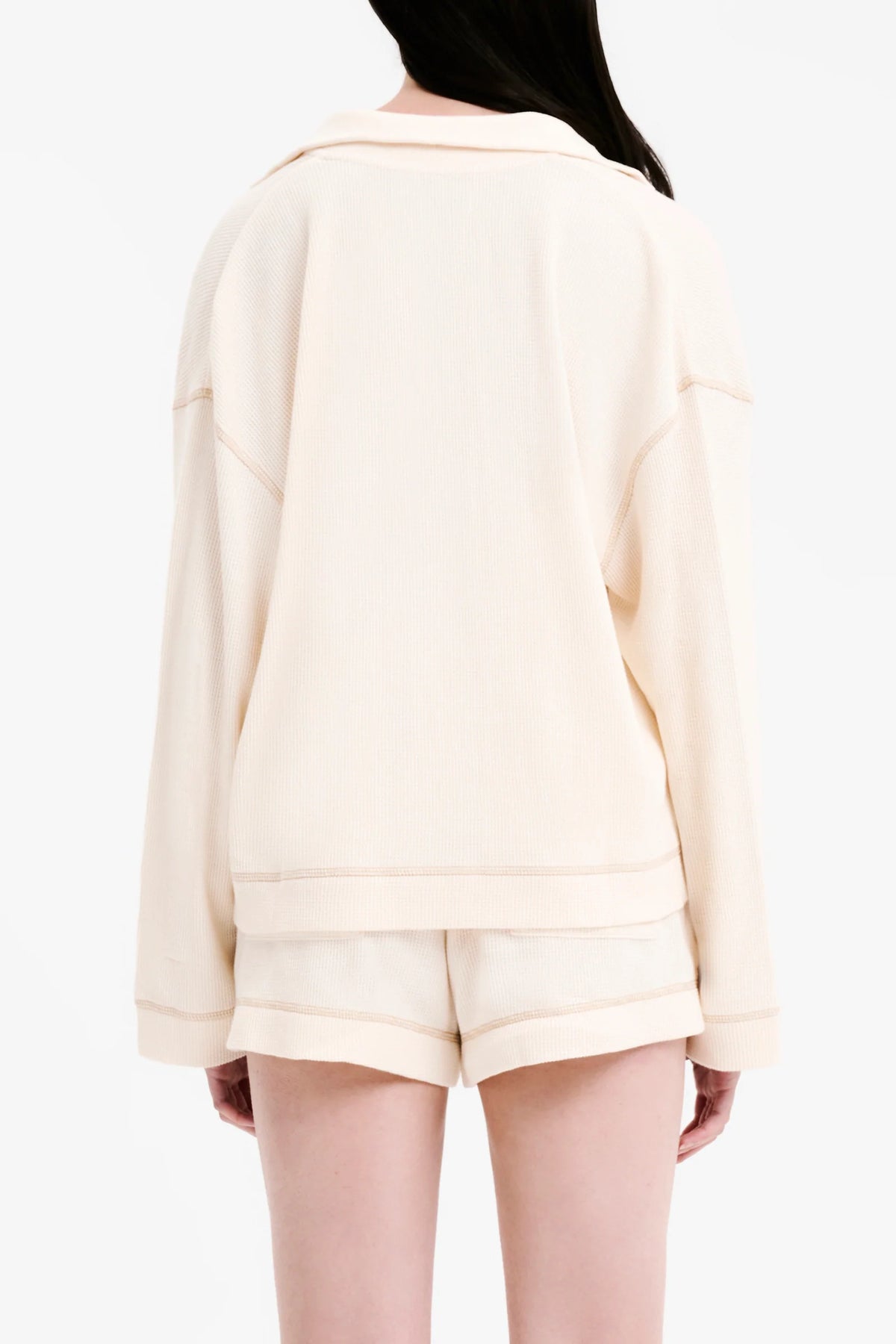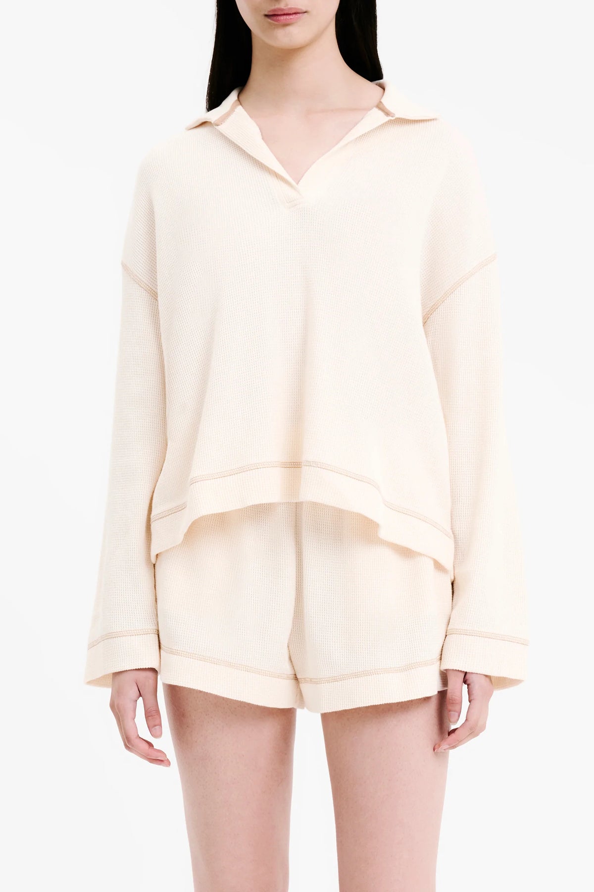 The Orion Waffle Rugby is a lightweight cotton long sleeve top with a subtle waffle texture. Features include a classic rugby collar with contrast stitching on hem and sleeve hemline. Fit is comfortable & relaxed. Pair with the Orion Waffle Short for a coordinating look.