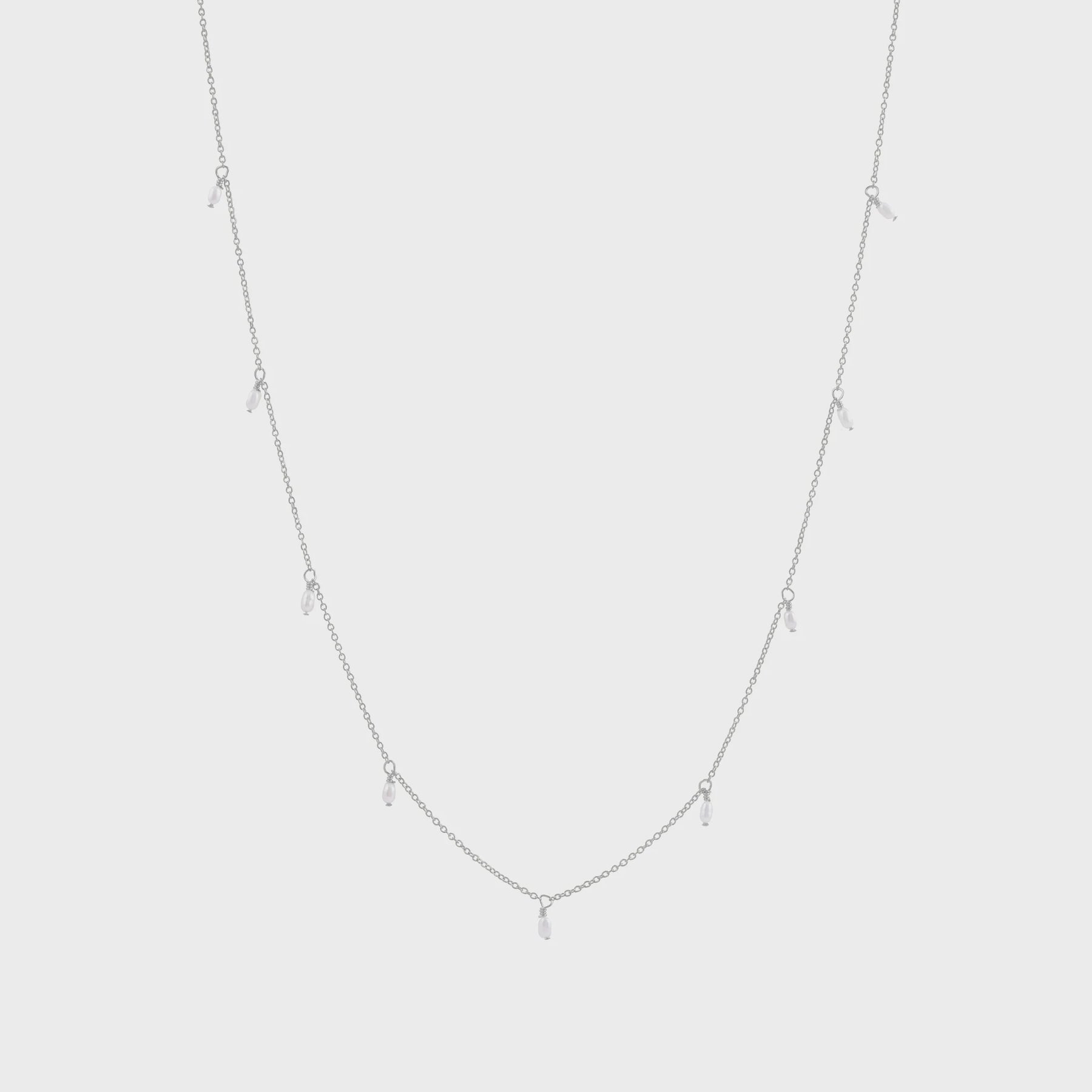 The Prim Pearl Necklace is a perfect graceful and refined accessory that is suitable for any occasion. This necklace features a fine 925 Sterling Silver plain chain that showcases five delicately suspended Freshwater Pearls. This piece is a minimalistic and decadent bracelet that will become an essential in your Alana Maria Jewellery collection.