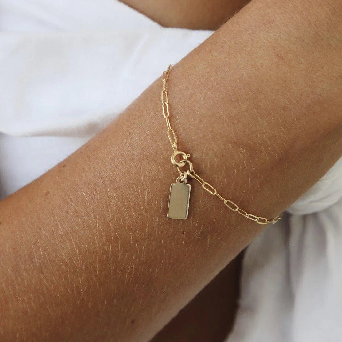 Offering a delicate look when worn, this effortlessly chic design oozes modern simplicity. Featuring a rectangular style chain with a rectangle tag attachment, it is the perfect everyday accessory.