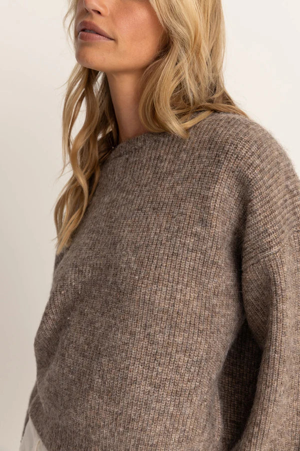 Meet the Quinn Knit Jumper modelled off our classic knit block, the April injection invites you to re-unite with a Rhythm favourite in an all new colourway that is designed for the considered individual's coastal uniform. Throw it on over your weekend fit, or over your morning walk attire. It'll hold your hand the entire way through the chill.