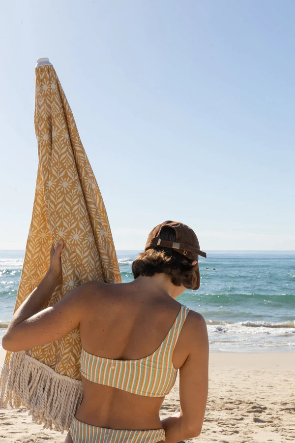 The Shine Cord Cap is a deconstructed low-profile 6-panel cap made from 100% cotton corduroy. It features an applique felt patch, strap back closure with a metal clamp, and offers a stylish and comfortable accessory for any casual or outdoor occasion.