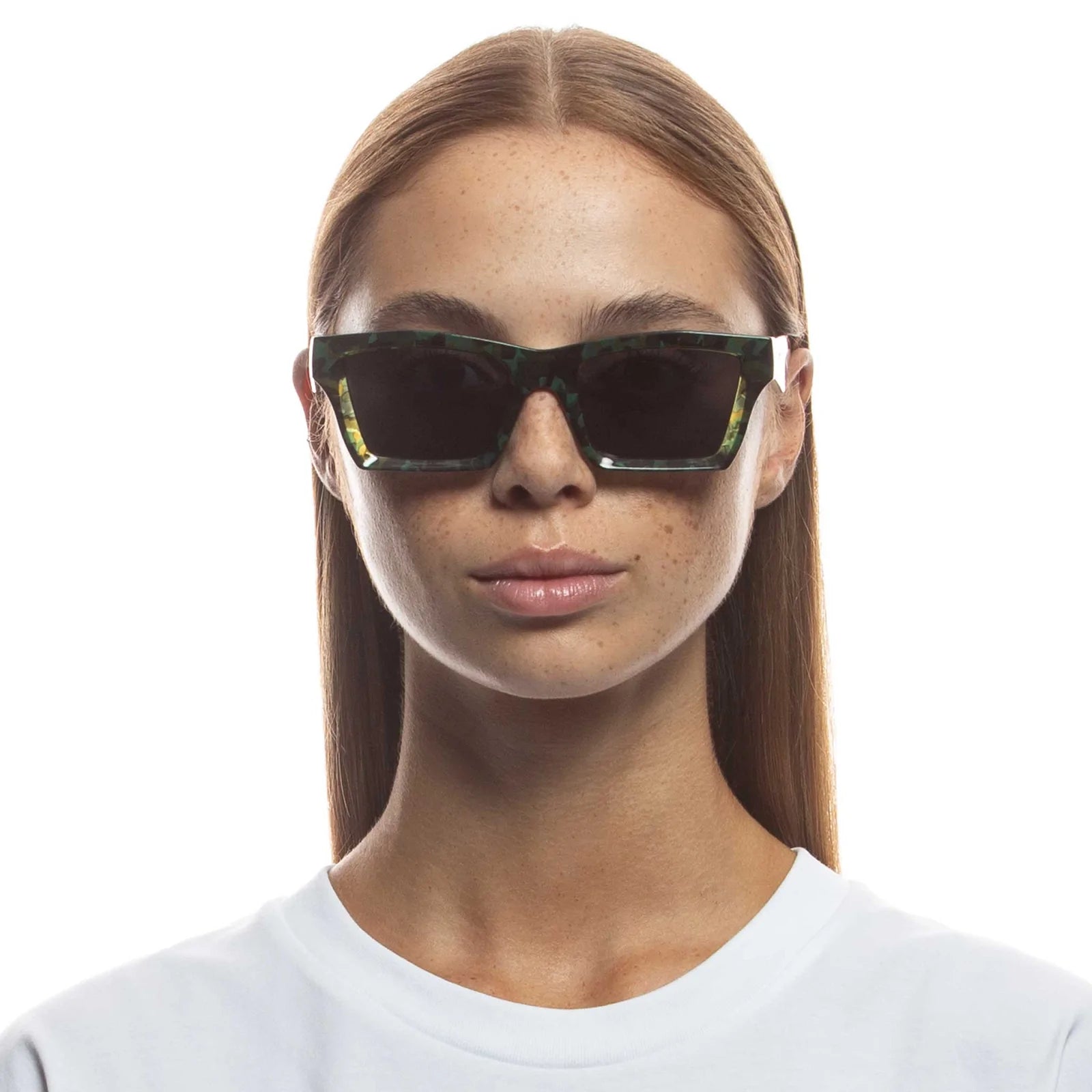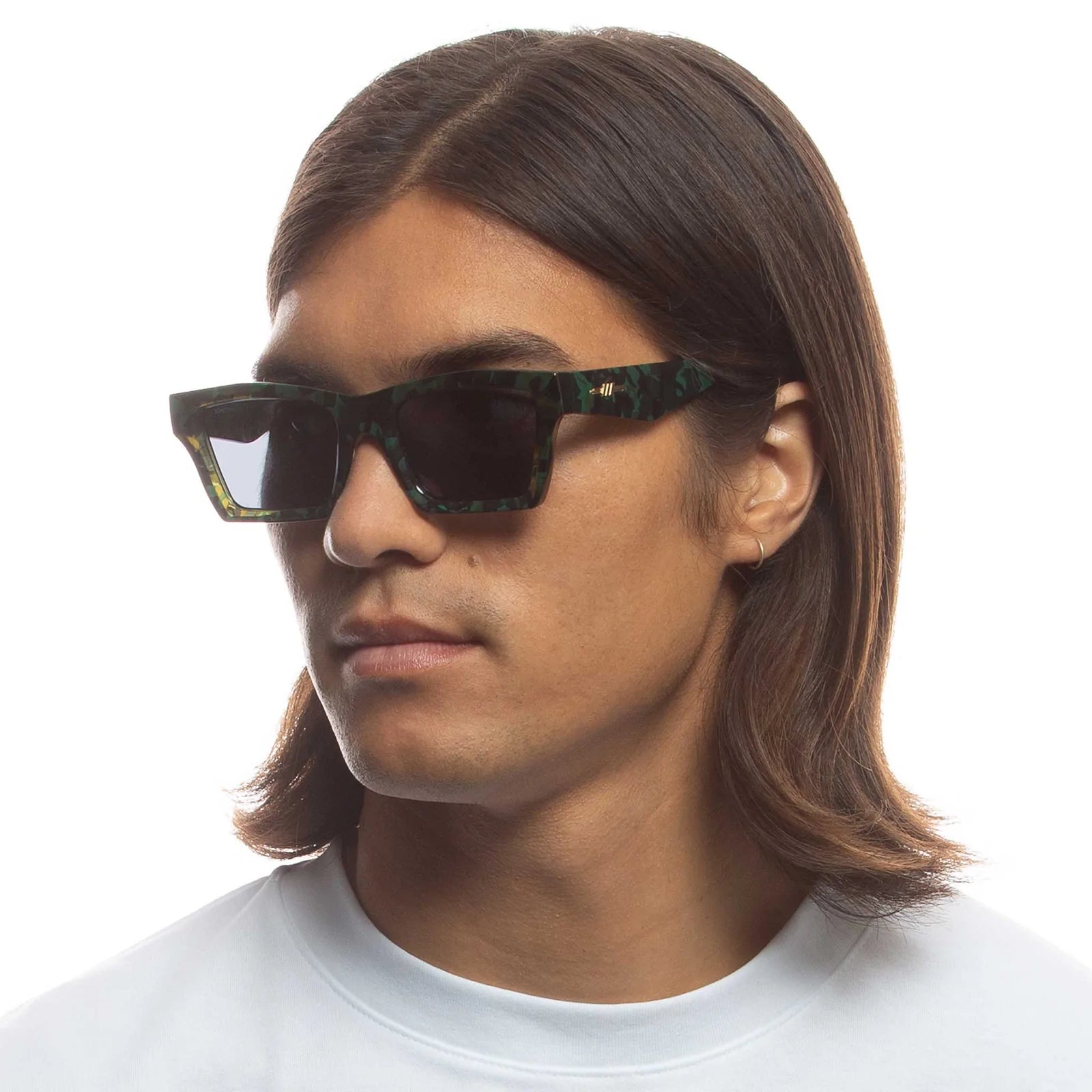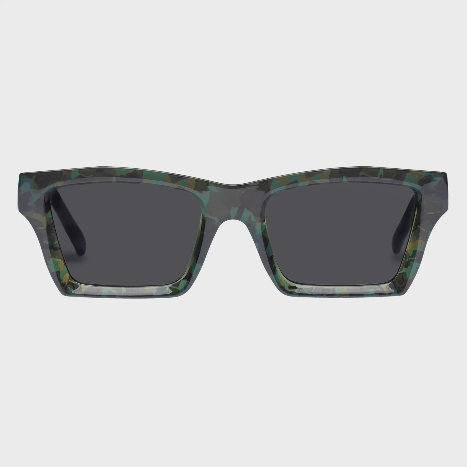 Finished in a khaki green tortoiseshell with dark lenses for a contemporary everyday look.