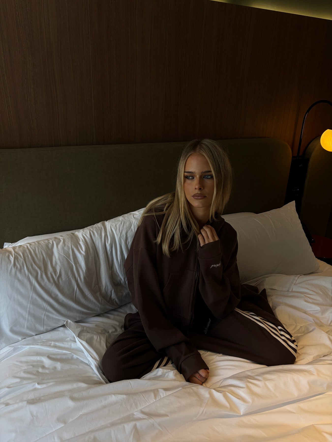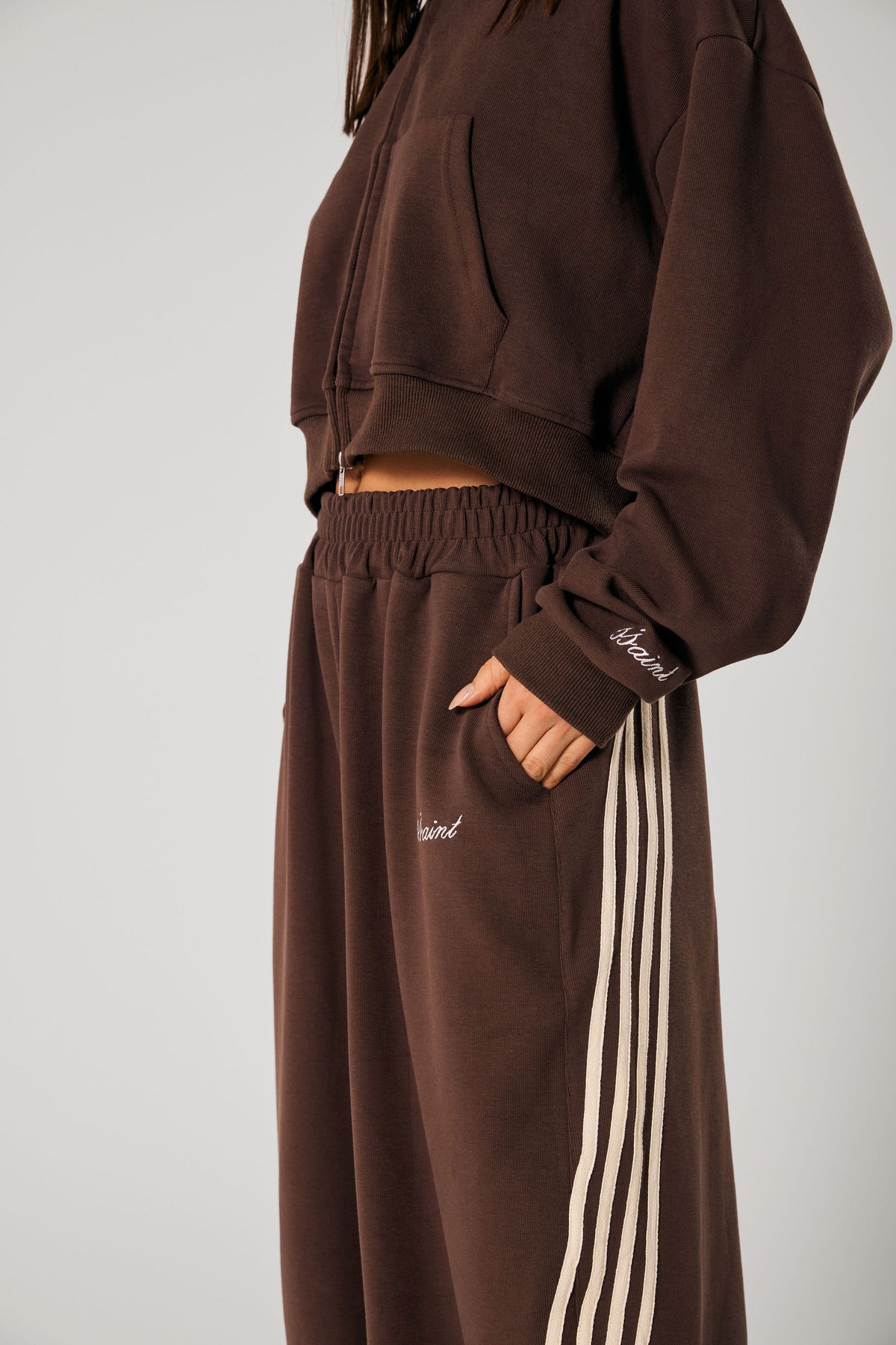The SŚAINT Cropped Hoodie in ‘Brown’ combines a relaxed, oversized fit with a clean, cropped cut. Made from a cotton-blend, it features a zip-up front, dropped shoulders, and subtle sleeve embroidery—an effortless everyday staple that can be styled on its own or paired with the SŚAINT Barrel Pant for a complete, elevated look.
