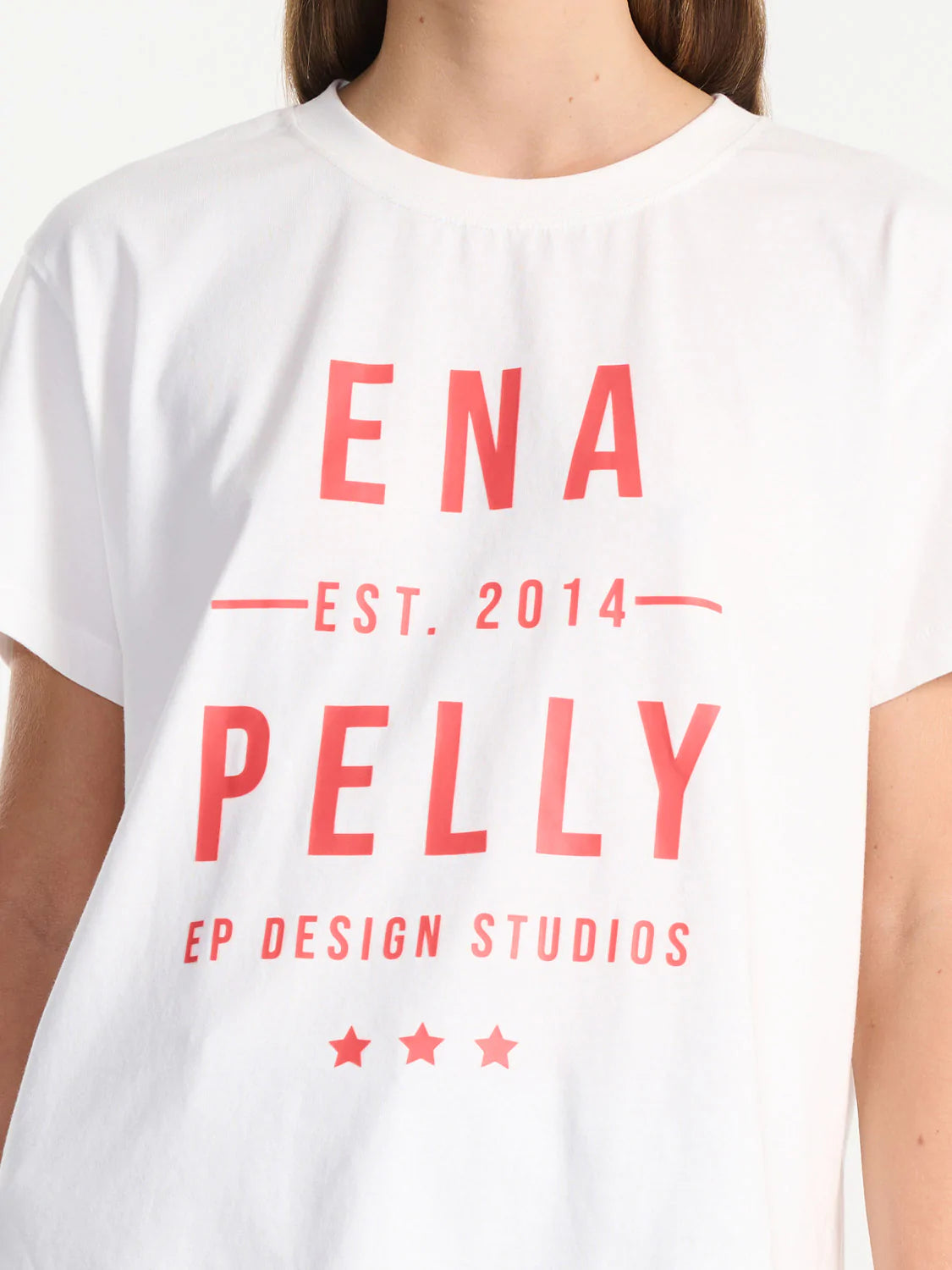 The Stacked Text Tee is crafted from a recycled cotton blend fabrication and is available in a classic vintage white colourway with a pop of colour. Featuring a clean graphic print, this style is perfect for your off duty wardrobe.