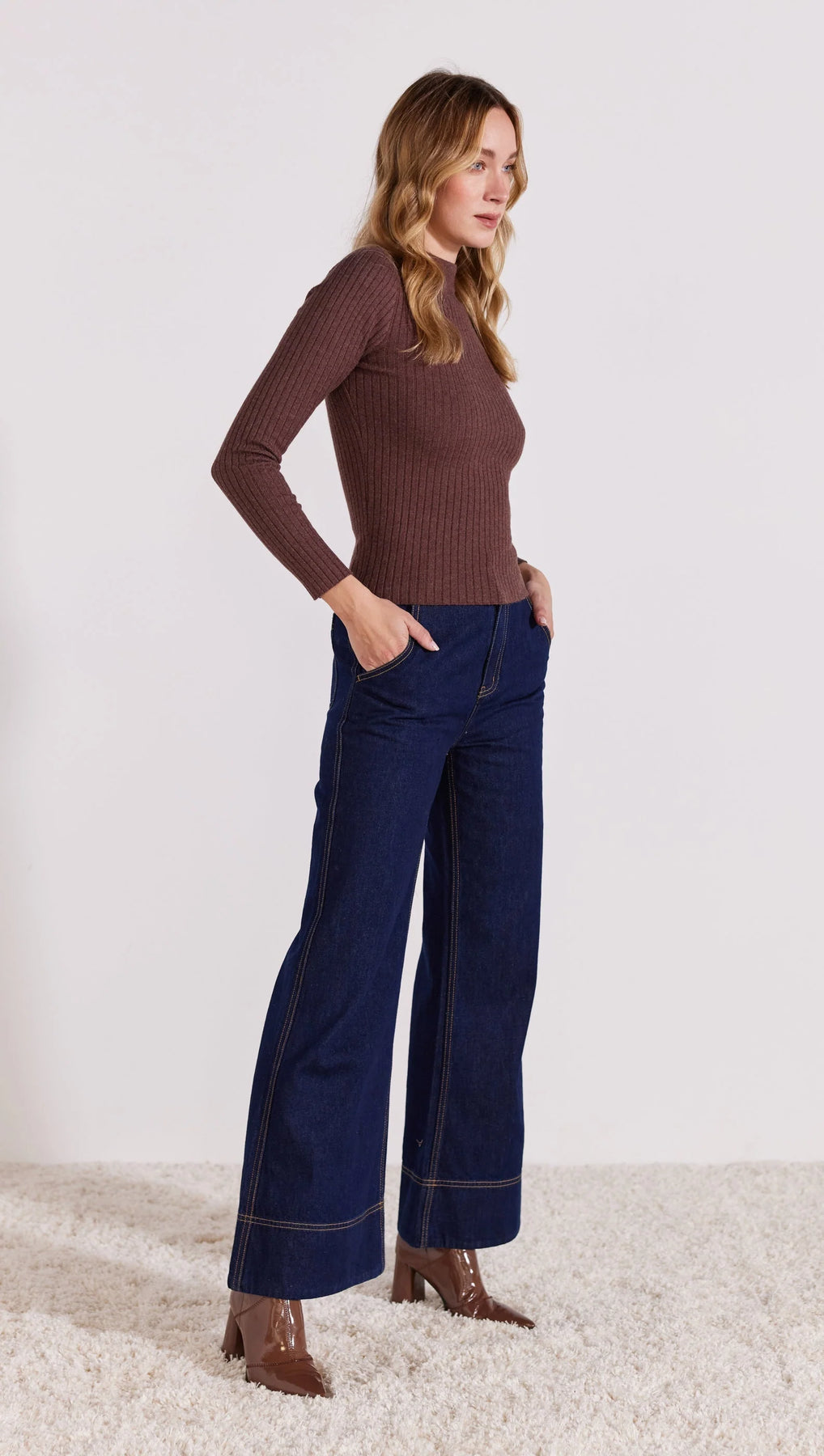Staple The Label Anya Ribbed Knit Top - Chocolate