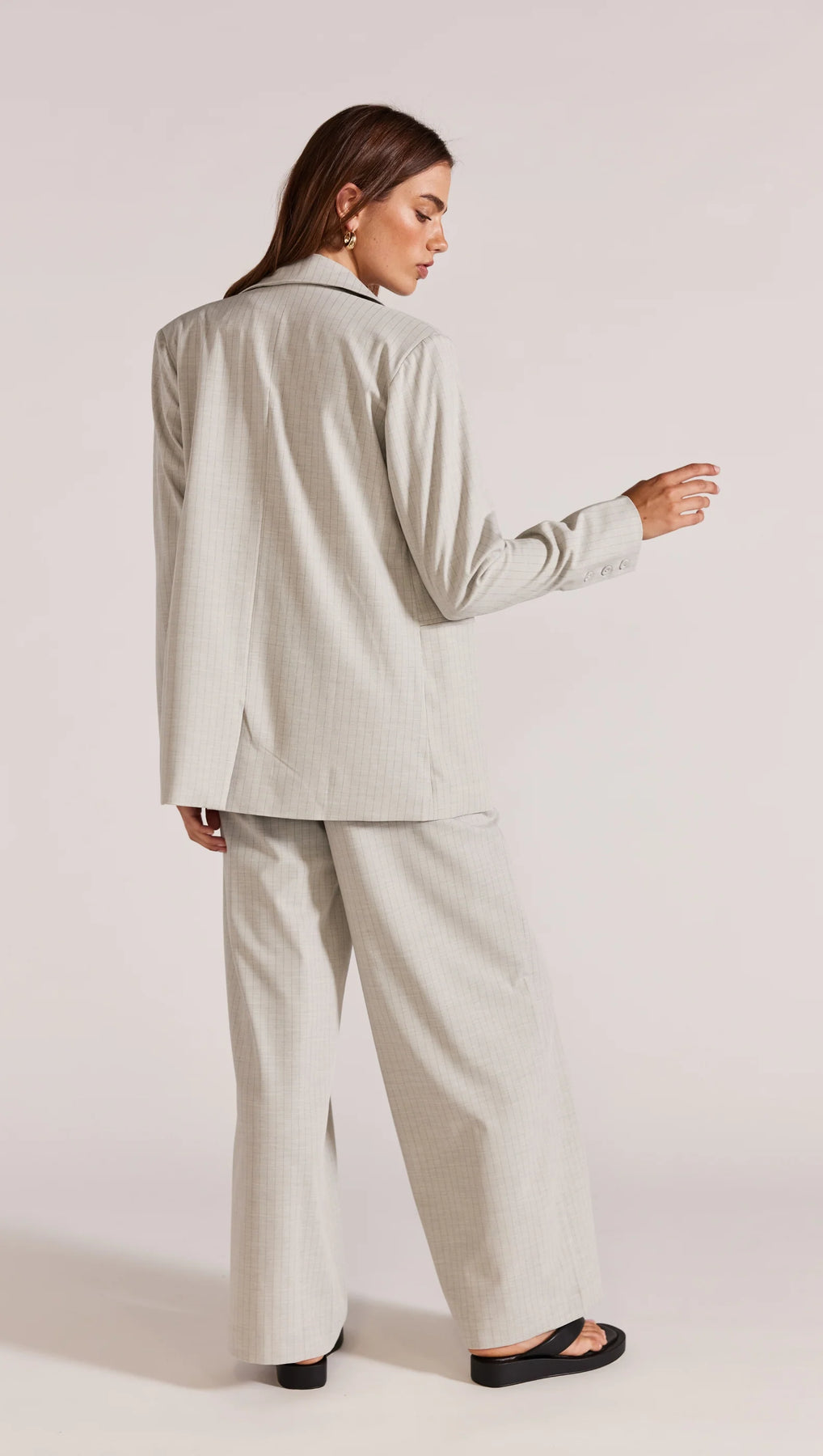 - Relaxed fit grey pinstripe blazer