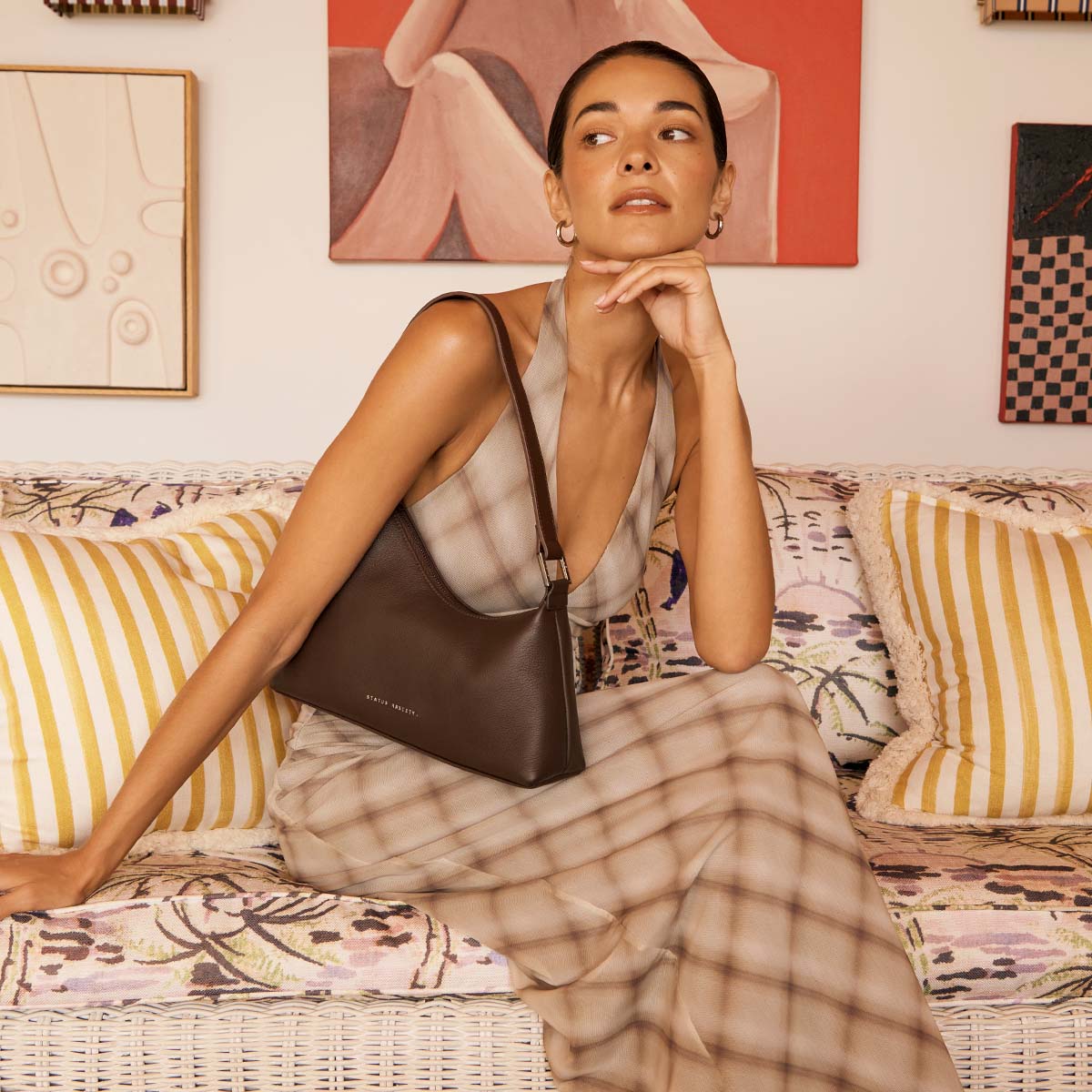 Scientific studies show that the majority of people are attracted to asymmetrical facial structures. Not shying away from her interesting and unique features, Reverie has a generous strap drop to sit comfortably under your arm and will gladly let you share the limelight she so enjoys.