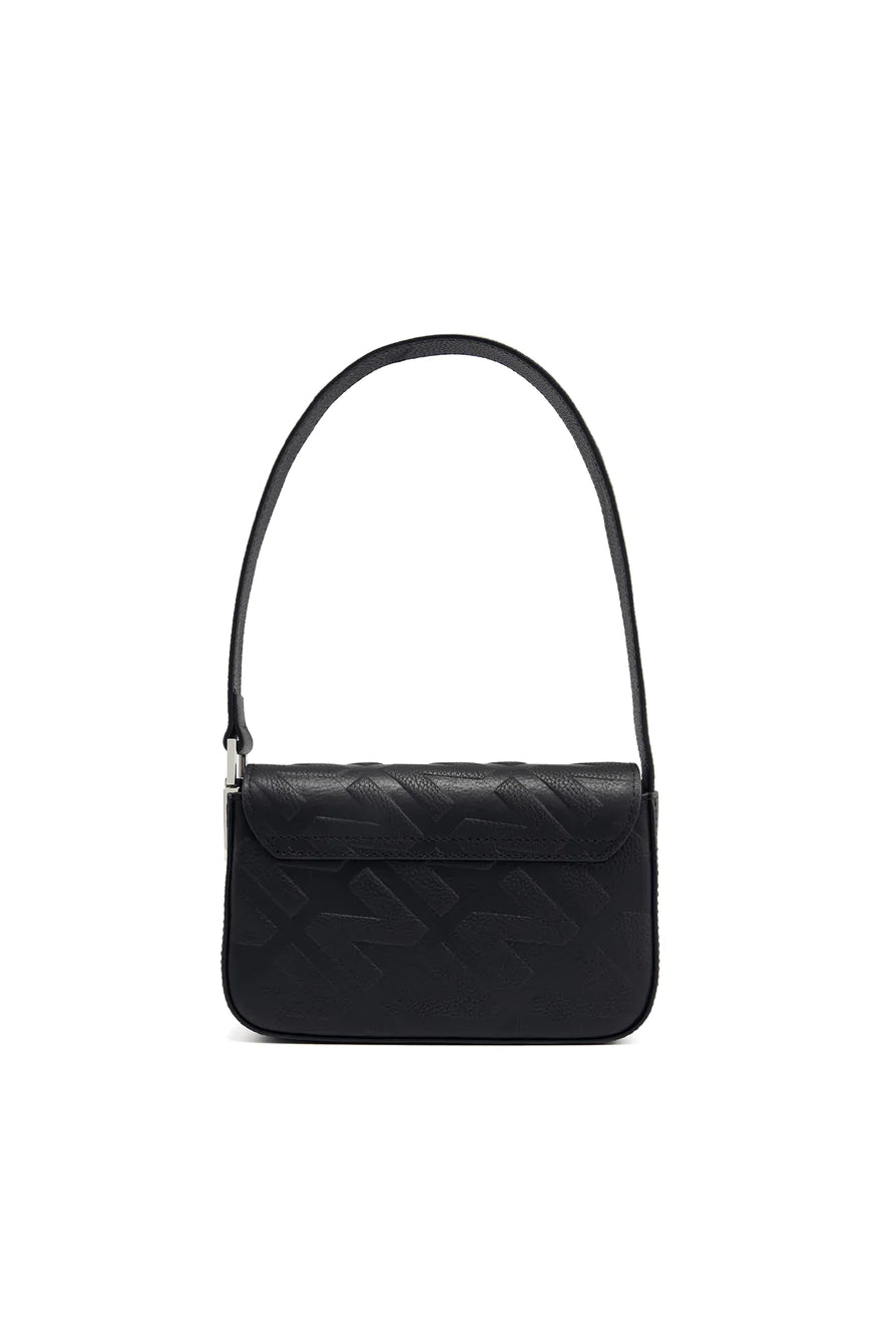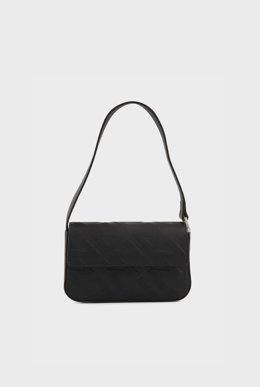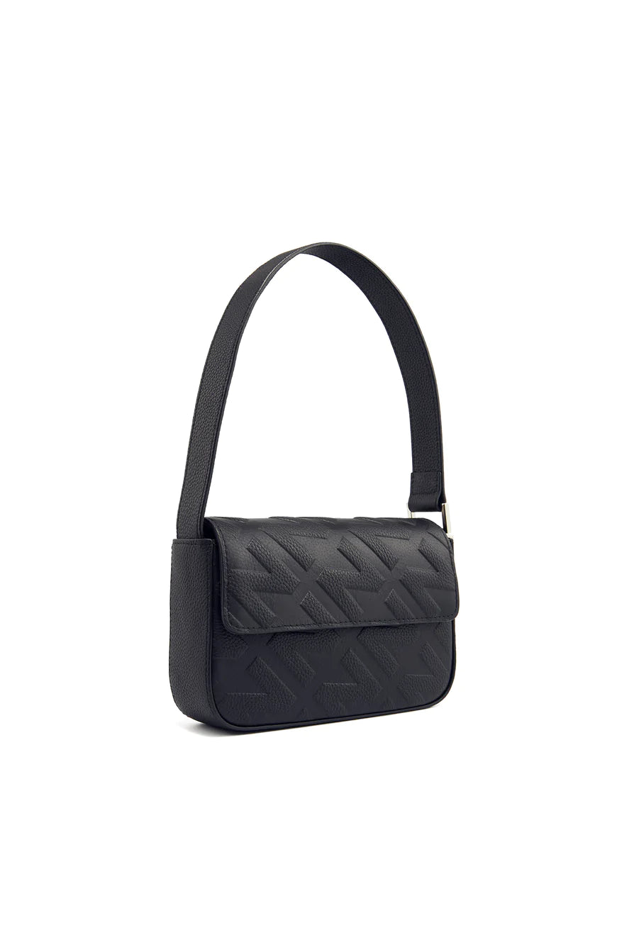 The Jones Black by Nakedvice is a black mini bag with a classic fold over silhouette. Crafted from pebbled leather with custom debossed N print, The Jones features two internal pockets for your essentials. Complete with a silver branded plaque, The Jones is the perfect black mini bag.